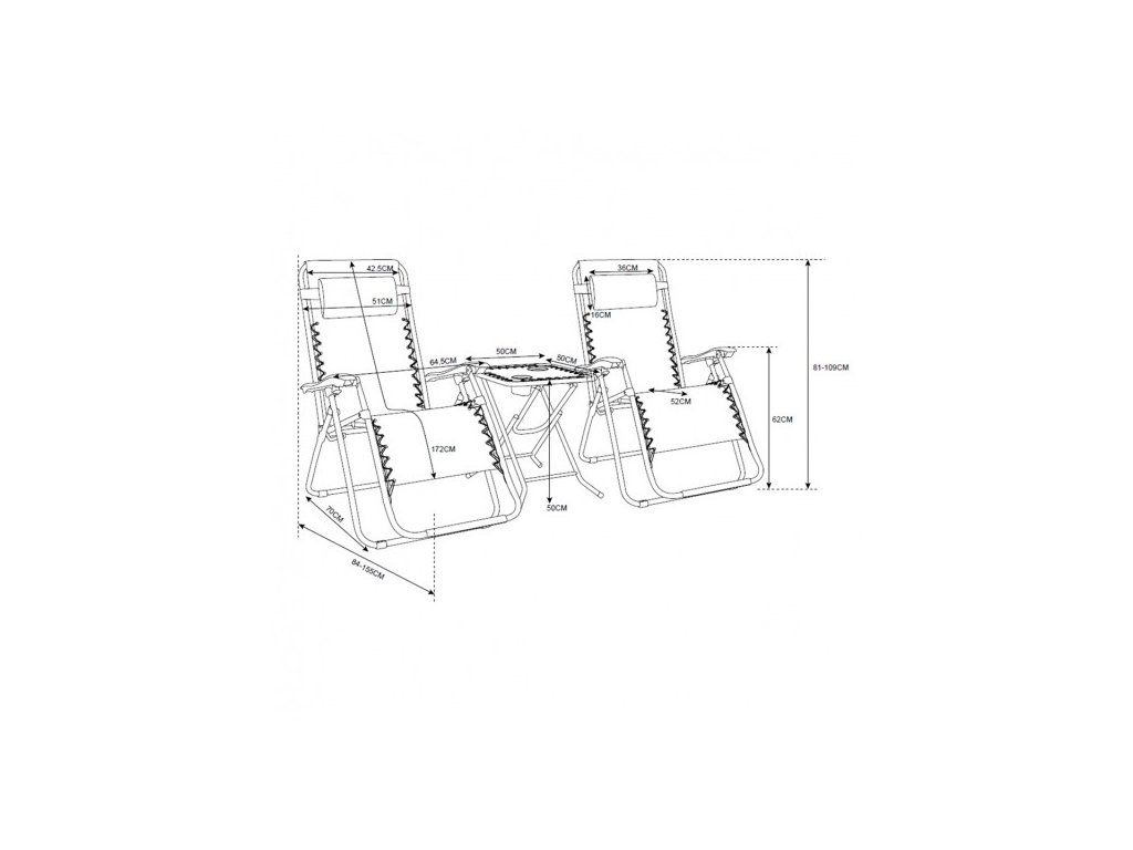 Skladací relaxačný set je ideálnym riešením pre tých, ktorí si cenia praktickosť a pohodlie pri relaxácii na čerstvom vzduchu. Set sa skladá z dvoch skladacích ležadiel, ktoré sa dajú ľahko zložiť a po sezóne uskladniť. Každé ležadlo je vybavené vankúšom, ktorý ešte viac zvyšuje pohodlie pri oddychu. Kompaktný stolík, tiež skladací s oceľovým rámom, je skvelým doplnkom súpravy. Táto skladateľná súprava na oddych je štýlovým doplnkom do záhrady, na terasu alebo balkón. Vďaka ľahkému skladaniu a uskladneniu je pripravená na použitie kedykoľvek a zabezpečuje pohodlie a relax počas letných dní.