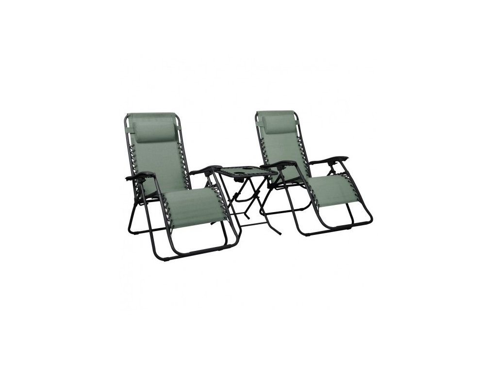 Sada 2x ležadlo DELUX zelené + stolík