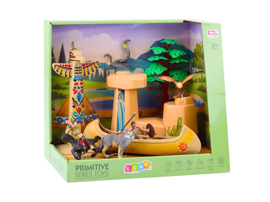 Súprava obsahuje realistickú kanoe s priestorom pre dve figúrky, farebný totem s tradičnými vzormi, skalné útvary, strom a množstvo figúrok: dvoch indiánov, koňa, vlka, orla a hada. Každý prvok bol starostlivo navrhnutý s ohľadom na najmladších používateľov – je vyrobený z bezpečných, odolných materiálov a má intenzívne, pútavé farby.