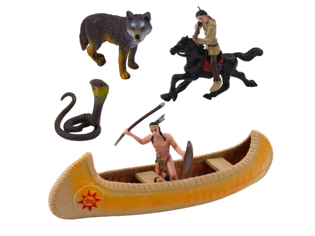 Sada figúrok z indiánskej dediny Indiánsky kanoe Totem