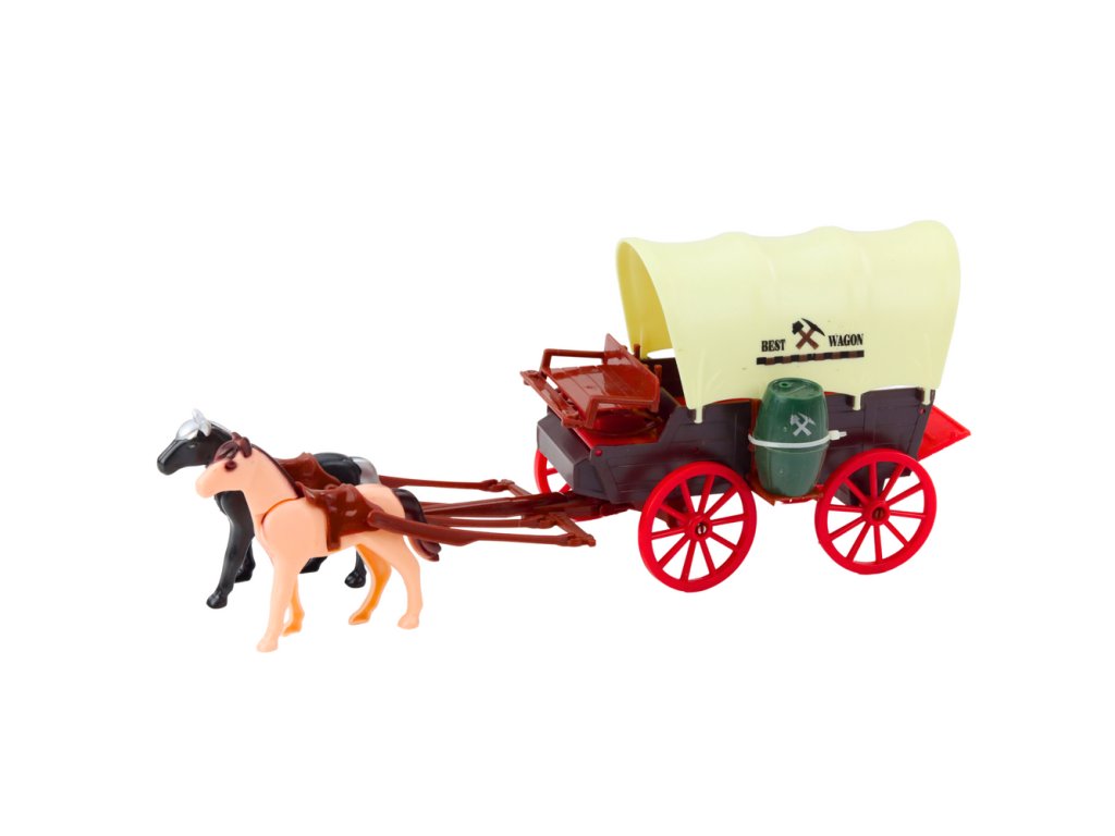 Hlavnou atrakciou sady je veľký klasický westernový voz s plachtou, ťahaný dvoma koňmi. Môže slúžiť ako dopravný prostriedok pre osadníkov, mobilná základňa alebo úkryt na noc v divočine. Súprava obsahuje aj figúrku kovboja, divoké zvieratá (vrátane orla), ako aj príslušenstvo potrebné pre život v divočine – debny, sud a palmy na vytvorenie kulís.