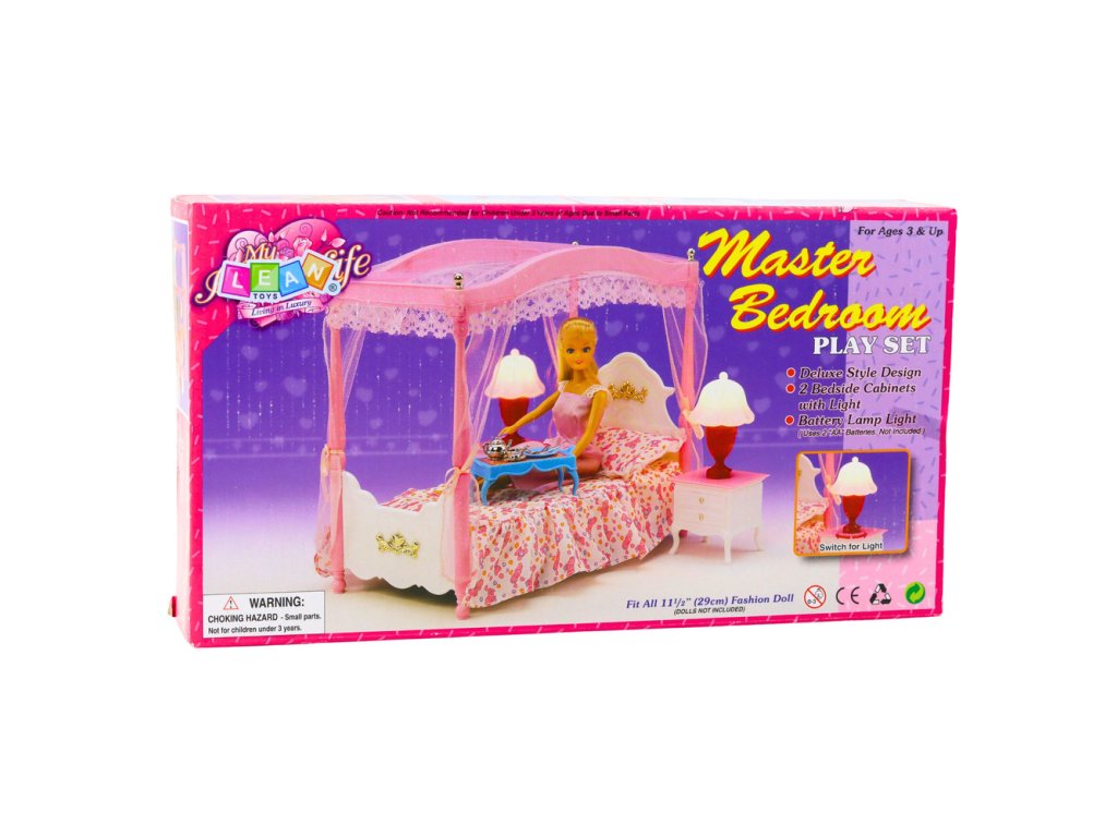 Sada nábytku pre bábiky Posteľ s baldachýnom Nočné stolíky Lampy