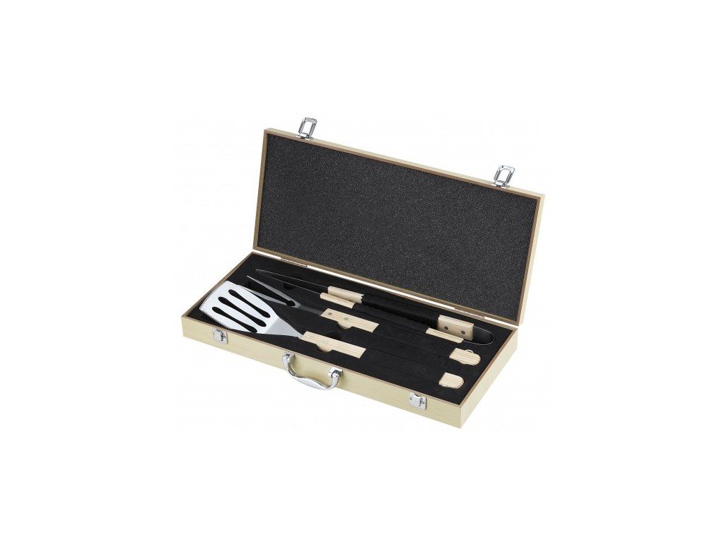Praktická sada príslušenstva na grilovanie uložená v elegantnej drevenej krabičke. Skvele sa hodí aj do kuchyne. Obsah sady: