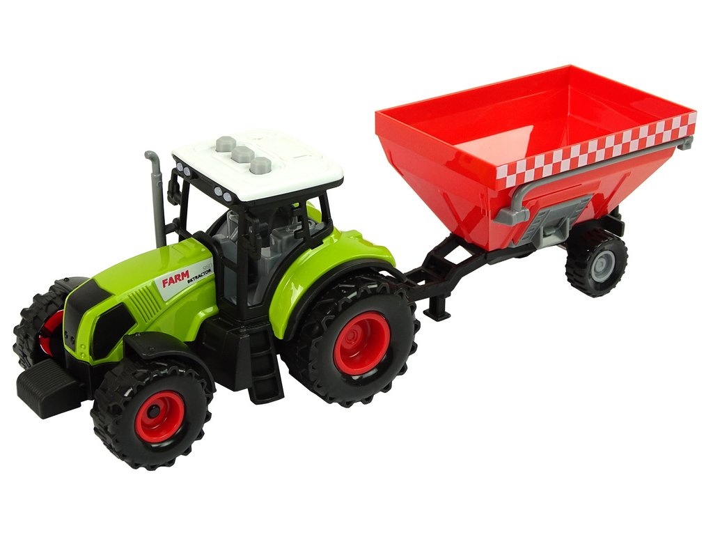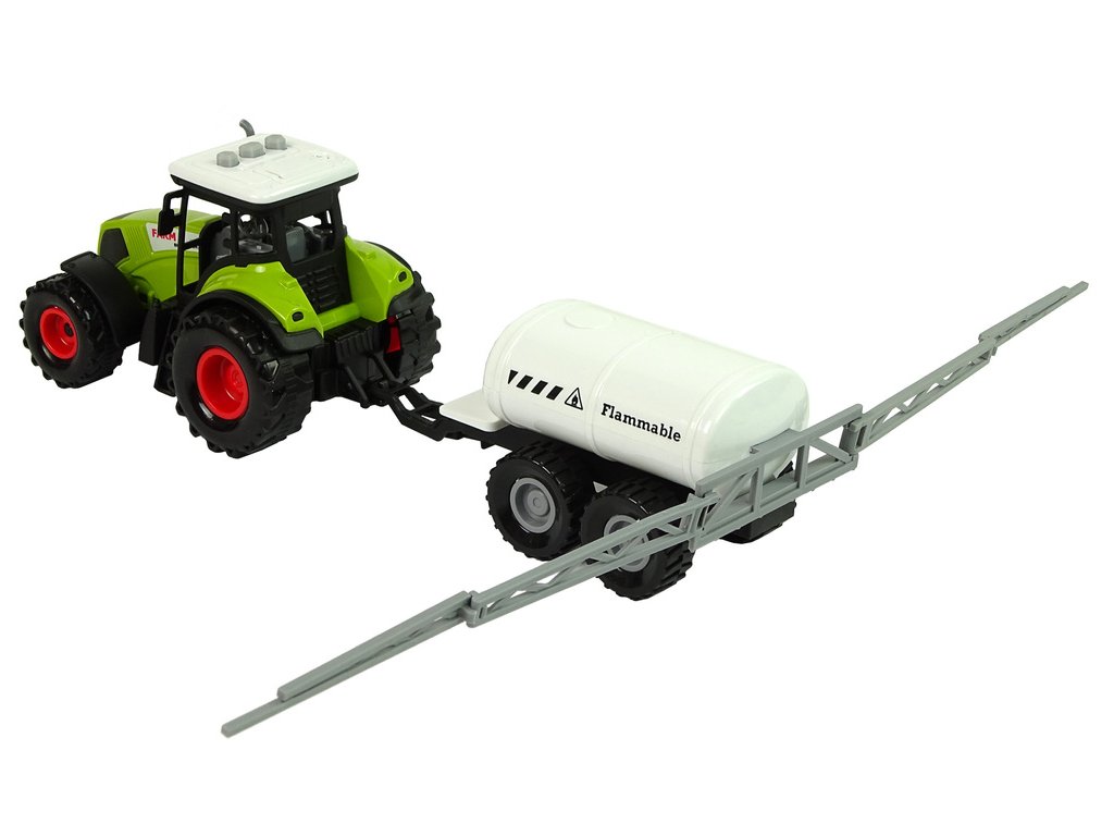Súprava sa skladá z troch traktorov v rôznych farbách a troch návesov, z ktorých každý má inú funkciu. Prvý je cisternový náves, ktorý dodáva vodu, druhý prepravuje obilie a tretí prepravuje krmivo pre zvieratá na farme. Sada rozvíja vedomosti detí o práci na vidieku a o tom, ako fungujú stroje. Stroje majú pohyblivé časti a zvukové efekty, ktoré ukazujú, ako fungujú v skutočnosti. Zvuky klaksónu, štartovania motora a cúvania podnecujú k hre.