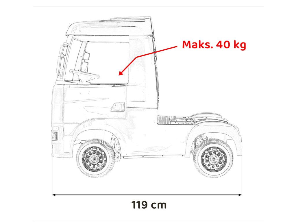 | Rozmery vozidla: | Dĺžka 119 cm,Šírka 53 cm,Výška 100 cm |
