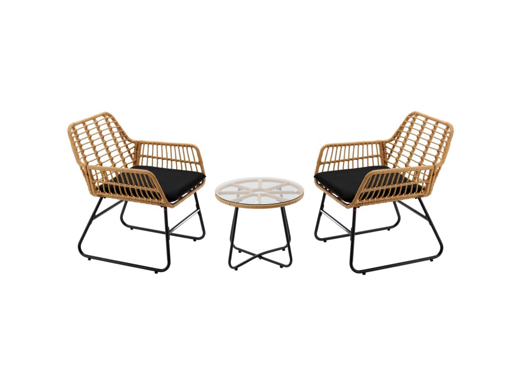 Kreslá sú ergonomicky tvarované a doplnené pohodlnými podsedákmi s hrúbkou 5 cm, ktoré zvyšujú komfort pri každodennom používaní. Poťahy sú vybavené zipsom, čo umožňuje ich jednoduché zloženie a údržbu. Výplet z kvalitného umelého ratanu je odolný voči poveternostným podmienkam, UV žiareniu aj vlhkosti, pričom si dlhodobo zachováva svoj vzhľad. Stabilitu zabezpečuje pevný rám z pozinkovanej ocele s práškovou úpravou, ktorá chráni konštrukciu pred koróziou.