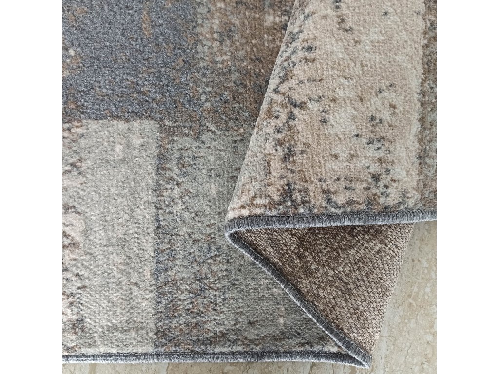 Sivo-hnedý koberec s geometrickým patchwork vzorom Roxanne 04 kombinuje moderný dizajn s praktickosťou každodenného používania. Nízky vlas a odolný materiál – polypropylén alebo zmes syntetických vlákien – zaručujú jednoduchú údržbu a dlhú životnosť.
