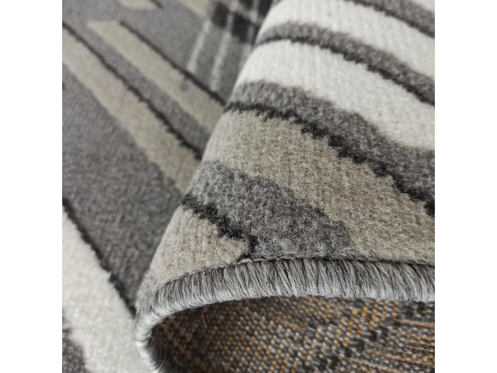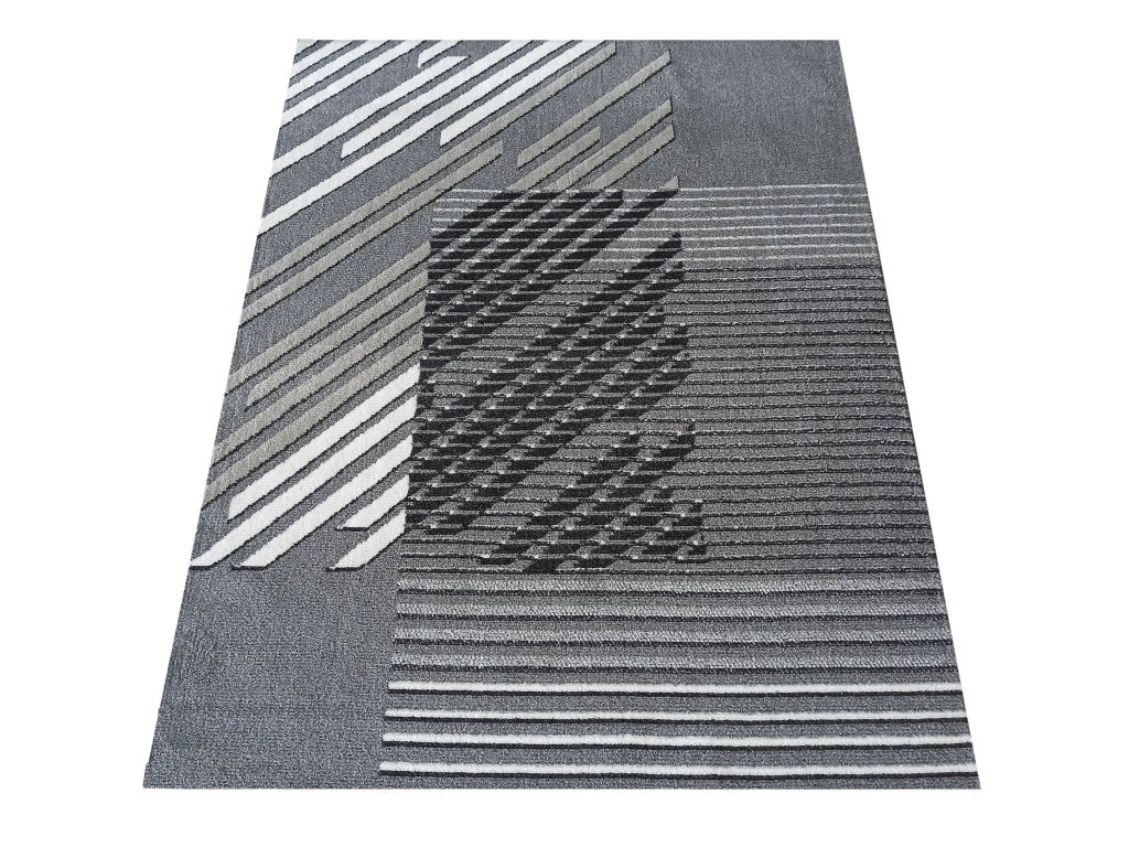 Moderný a štýlový koberec Lara so svojím dynamickým geometrickým vzorom vytvára v interiéri moderný akcent a kontrastné línie v odtieňoch sivej, čiernej a krémovej farby dodávajú priestoru hĺbku a charakter. Tento koberec je viac než len podlahová krytina; je to dizajnový kúsok, ktorý definuje atmosféru miestnosti.