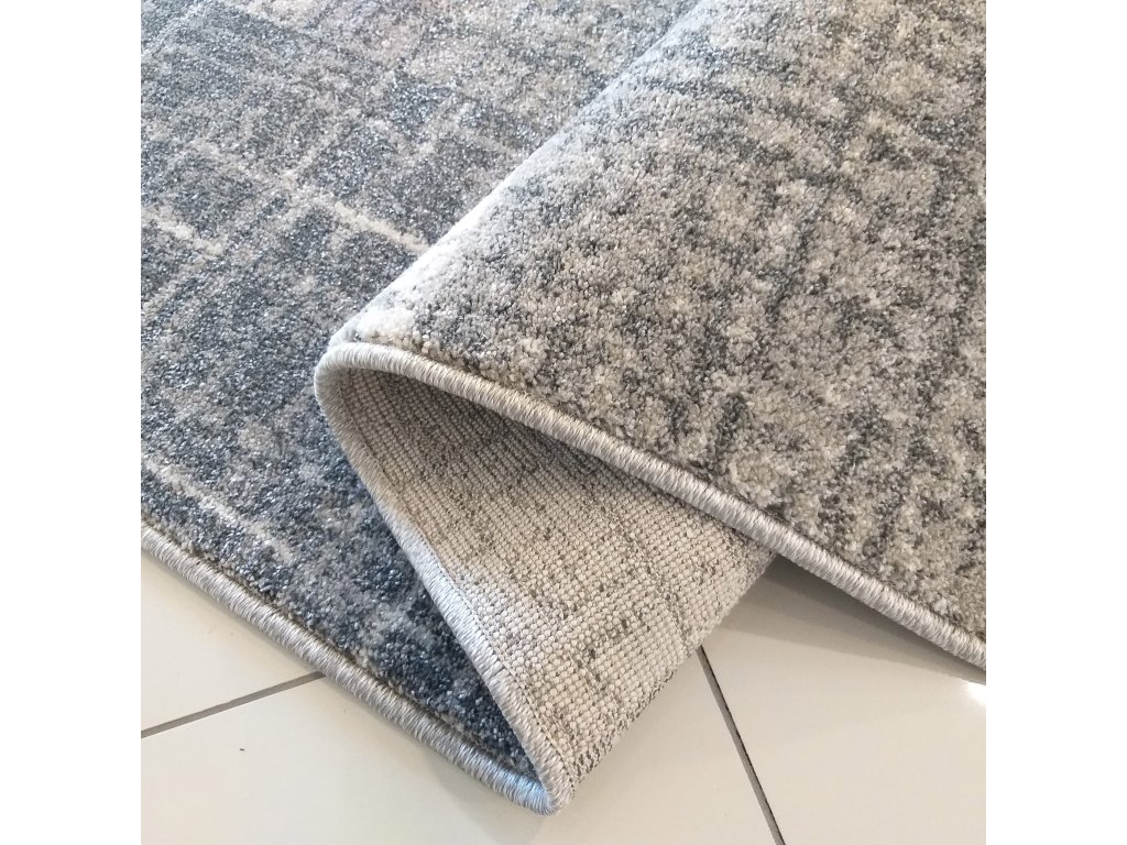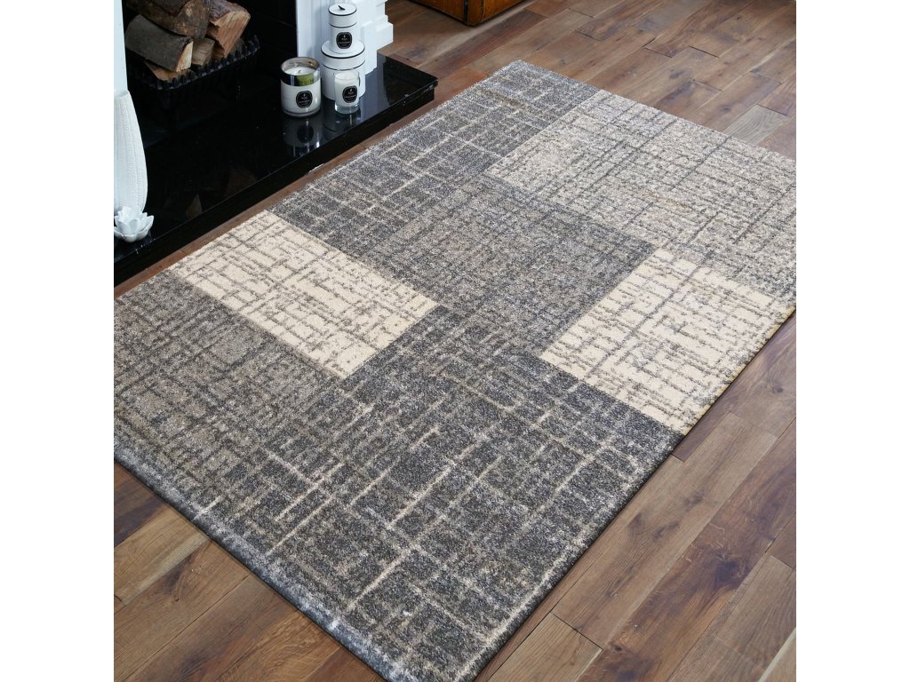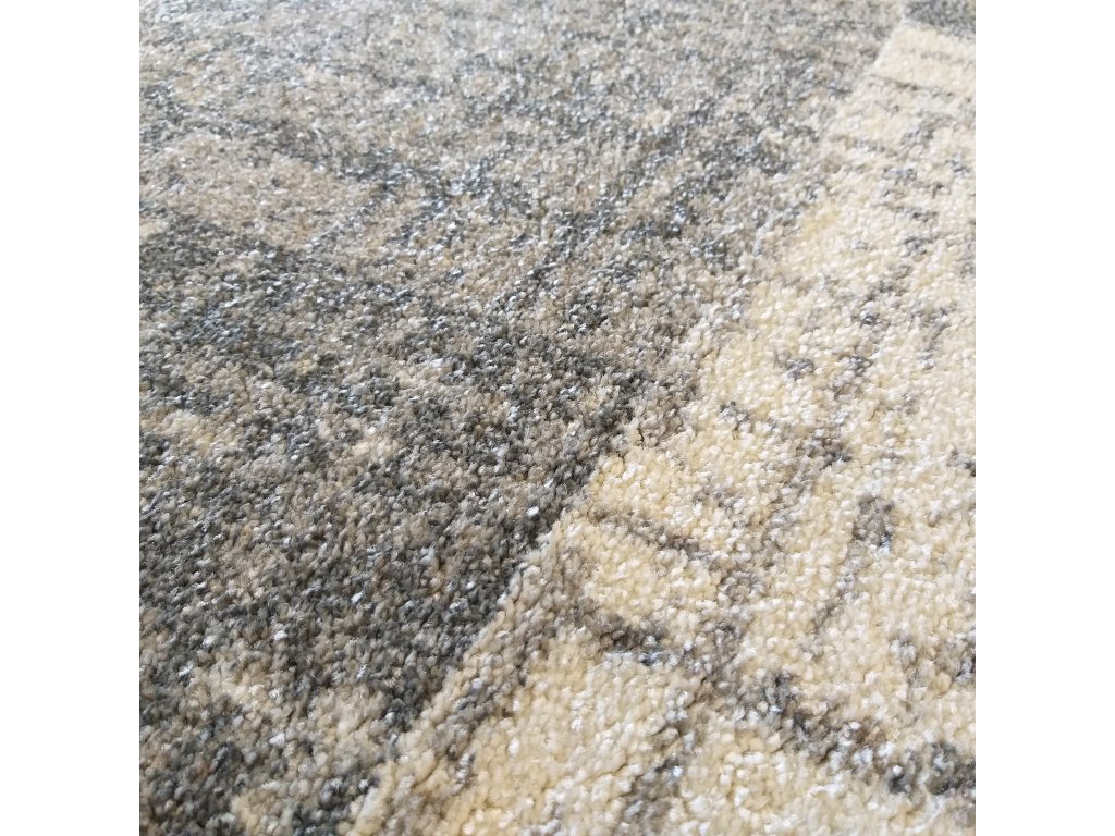 Sivý koberec s geometrickým vzorom z kolekcie Vista je štýlovým riešením pre interiéry, ktoré uprednostňujú moderný a sofistikovaný vzhľad. Kombinácia sivých a svetlých plôch v nepravidelnom geometrickom usporiadaní vytvára vizuálne zaujímavý efekt pripomínajúci jemnú textilnú štruktúru.