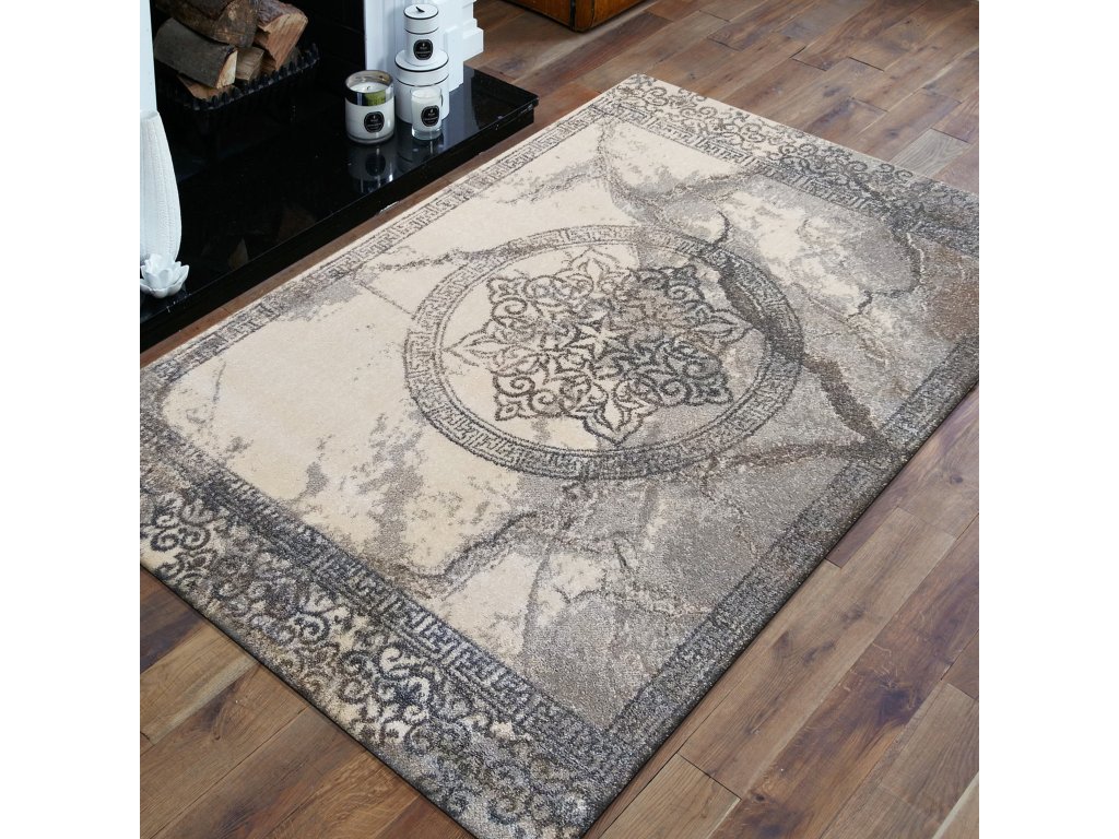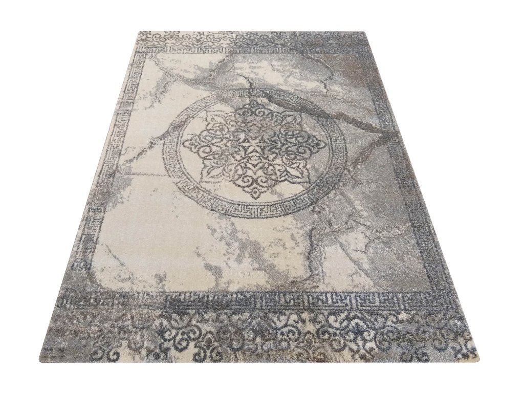 Vneste do svojho domova kúsok starožitného šarmu s kobercom z kolekcie Vista. Tento moderný kusový koberec sa pýši podmanivým geometrickým vzorom, často prirovnávaným k motívu Versace, ktorý je zvýraznený elegantnými odtieňmi sivej a krémovej. Inšpirovaný prírodnými odtieňmi kameňa, dodá vášmu interiéru pokoj a stabilitu.