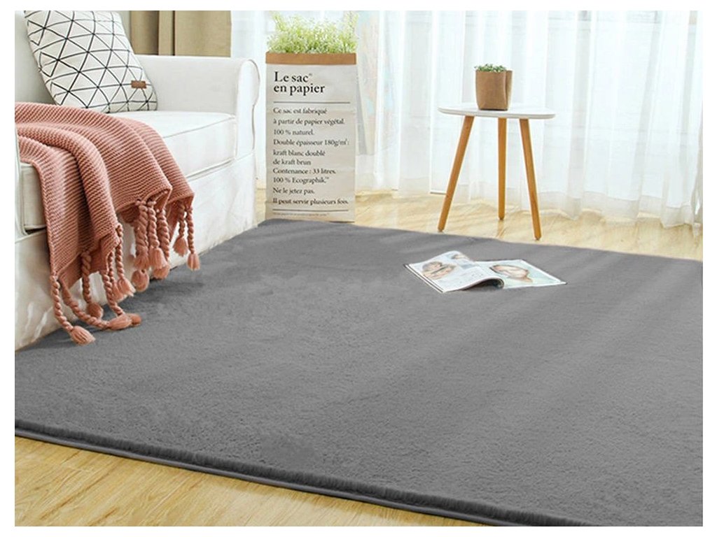 Koberec je vyrobený z kvalitného polyesteru, ktorý verne napodobňuje jemnú králičiu kožušinu. Hustý a rovnomerný vlas vytvára nadýchaný, hrejivý povrch príjemný na dotyk aj chôdzu naboso. Sivá farba pôsobí elegantne, nadčasovo a bez problémov zapadne do moderných, minimalistických, škandinávskych aj industriálnych interiérov.