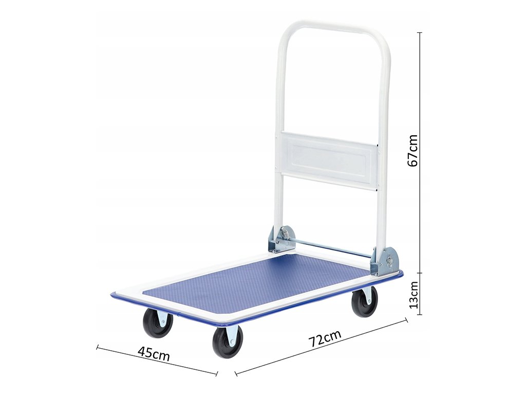 Vozík má kompaktné rozmery 72 × 45 × 80 cm, vďaka čomu je ideálny aj do menších priestorov. Robustný kovový podvozok a priestranná plošina poskytujú dostatočný priestor pre bezpečnú prepravu rôzneho tovaru. Konštrukcia je vyrobená z kvalitných a odolných komponentov, ktoré zabezpečujú dlhú životnosť aj pri každodennom používaní.
