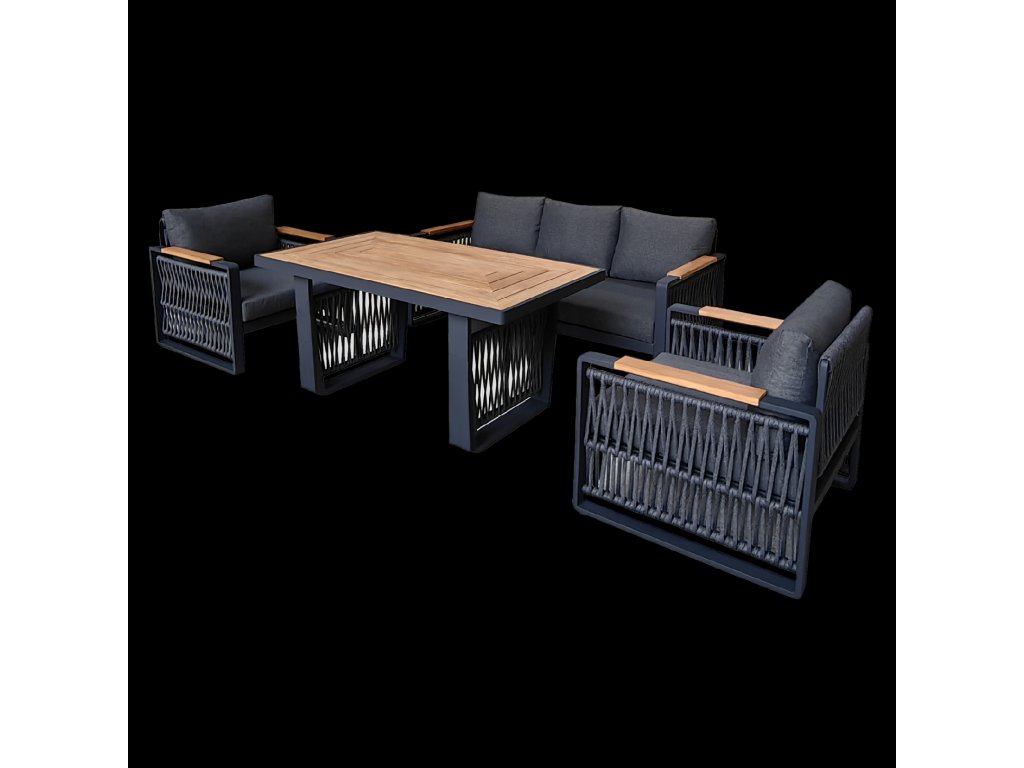 SKOPJE HLINÍKOVÁ SÚPRAVA NÁBYTKU (SOFA + 2 KRESLÁ + STÔL) ŠEDÁ + ŠEDÉ VANKÚŠE *8109