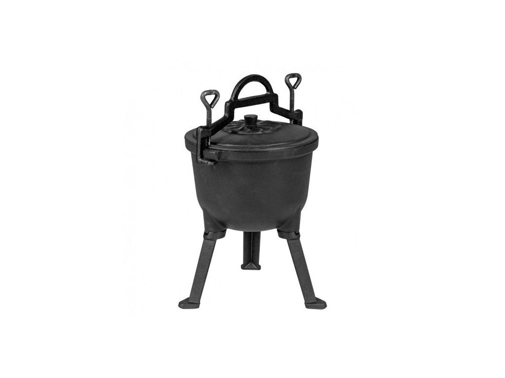 Liatinový kotlík je praktickým riešením na prípravu vynikajúcich jedál na ohni. Pevná liatinová konštrukcia zaručuje odolnosť a dlhšiu životnosť. Veko uľahčuje udržanie požadovanej teploty vo vnútri a zabraňuje prípadnému rozstrekovaniu tuku. Smaltovaný povrch uľahčuje udržiavanie kotlíka v čistote. Veľký objem 10 l umožňuje prípravu jedla pre niekoľko osôb.