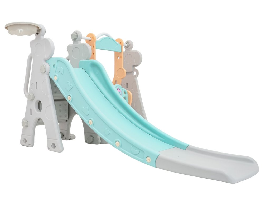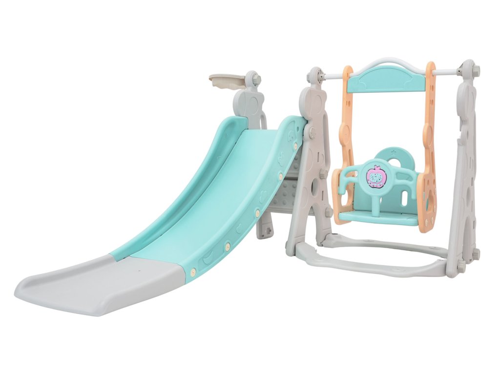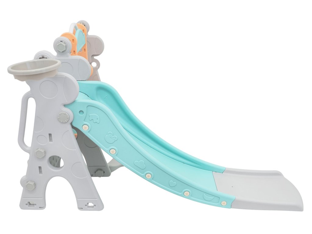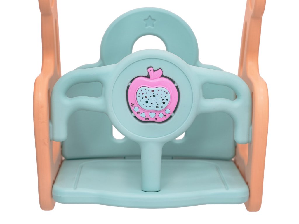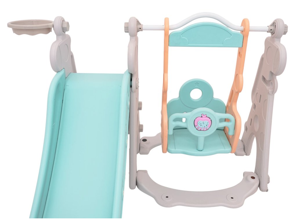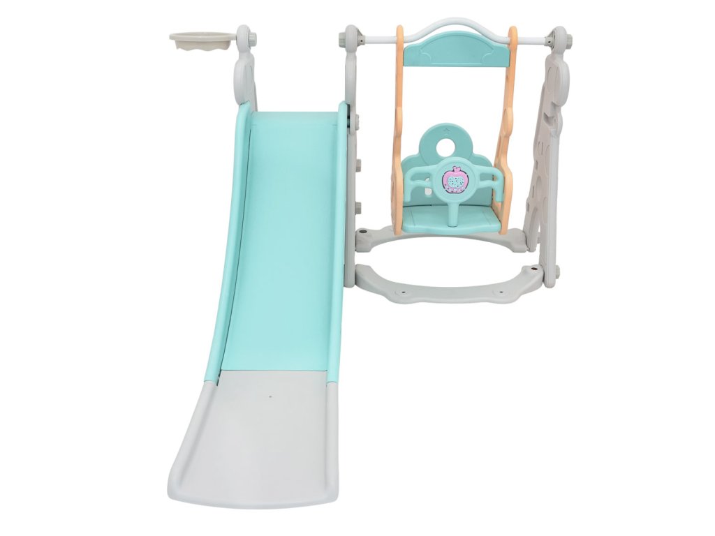 Súprava 3 v 1, šmýkačka, hojdačka, basketbalový kôš pre deti od 1 roka. Všetky prvky súpravy sú vyrobené z vysoko kvalitného HDPE, ktorý je flexibilnejší materiál a odolnejší voči mechanickému poškodeniu v porovnaní s materiálmi používanými v iných konštrukciách tohto typu. Veľké komponenty uľahčujú montáž. Sada je ideálna pre vonkajšie aj vnútorné použitie. Vlastnosti: - pre deti od 1 roka, - široká, stabilná hojdačka, - sedadlo s odnímateľnou bezpečnostnou tyčou, - pevné hojdacie tyče pre lepšiu stabilitu počas hry, - široká platforma posilňujúca konštrukciu, - vysoké operadlo hojdačky, - dlhá dvojitá plastová šmýkačka, - široké, bezpečné schodíky na šmýkačke, - basketbalový kôš, - gumová lopta v cene, - konštrukcia hojdačky umožňujúca zmeny štruktúry, - odnímateľné jablko so zvukovými prvkami: zvuky zvierat a ich mená, melódie, pesničky, hlasové príkazy v angličtine a možnosť zmeny podsvietenia jablka: modrá, červená, zelená, blikajúce svetlá, - maximálna nosnosť sady: 100 kg. |