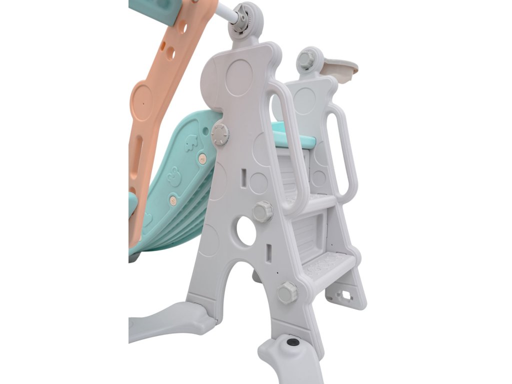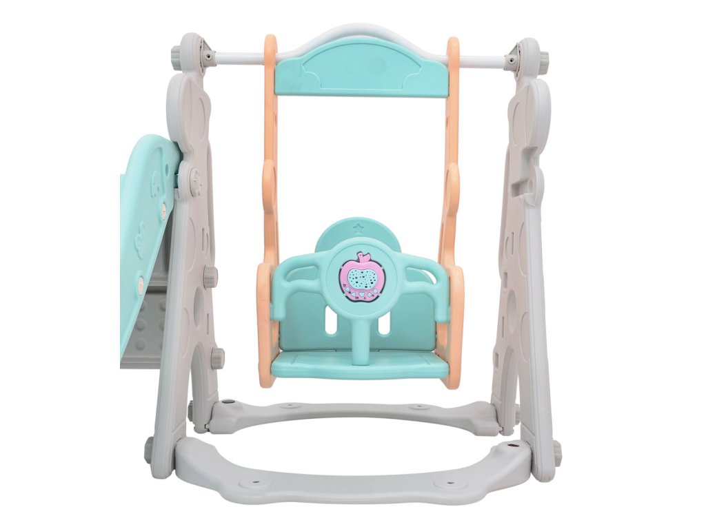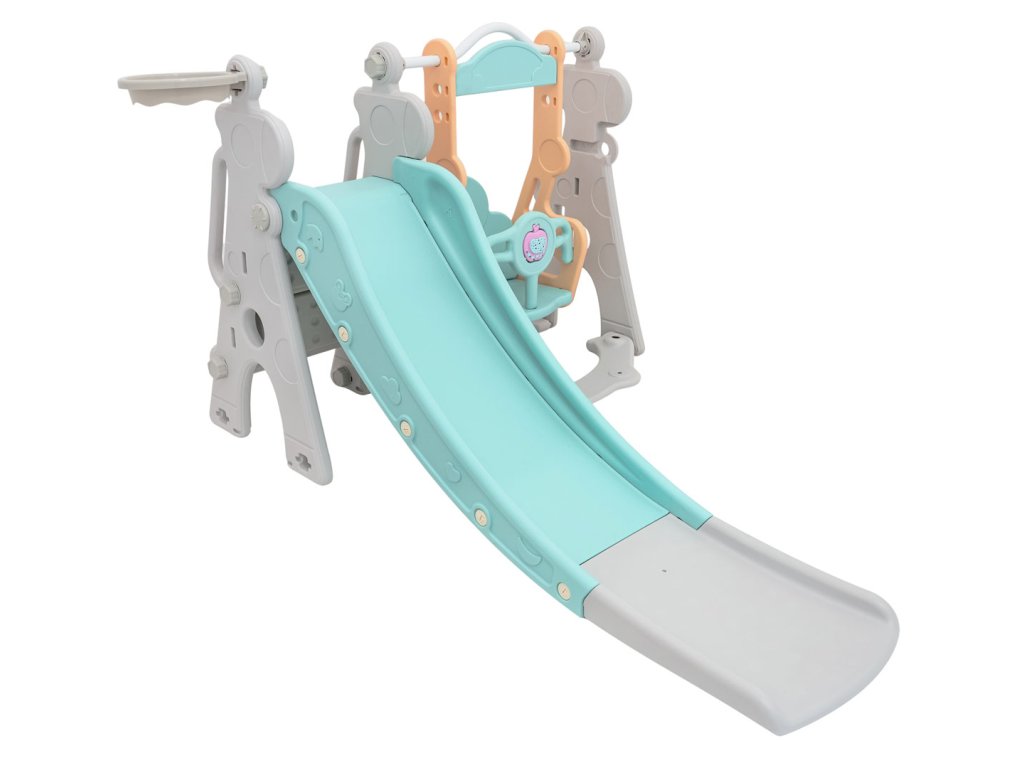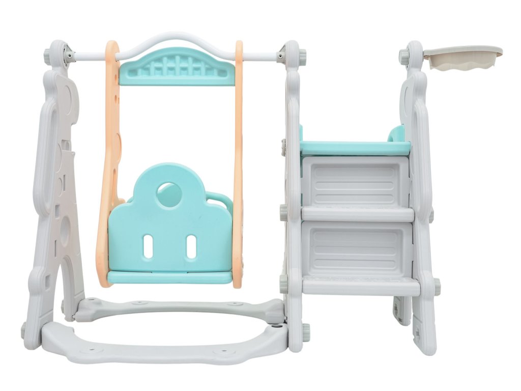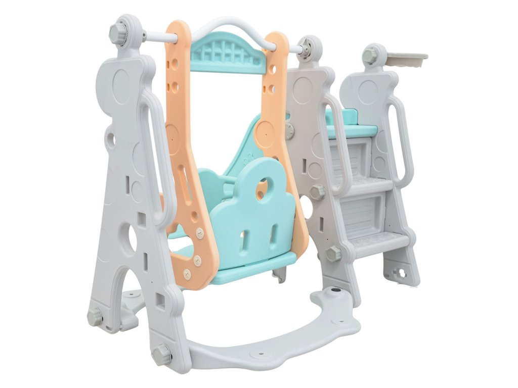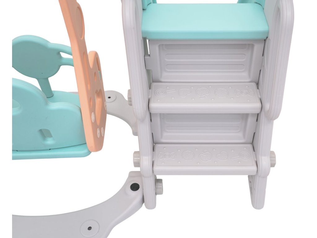 Súprava 3 v 1, šmýkačka, hojdačka, basketbalový kôš pre deti od 1 roka. Všetky prvky súpravy sú vyrobené z vysoko kvalitného HDPE, ktorý je flexibilnejší materiál a odolnejší voči mechanickému poškodeniu v porovnaní s materiálmi používanými v iných konštrukciách tohto typu. Veľké komponenty uľahčujú montáž. Sada je ideálna pre vonkajšie aj vnútorné použitie. Vlastnosti: - pre deti od 1 roka, - široká, stabilná hojdačka, - sedadlo s odnímateľnou bezpečnostnou tyčou, - pevné hojdacie tyče pre lepšiu stabilitu počas hry, - široká platforma posilňujúca konštrukciu, - vysoké operadlo hojdačky, - dlhá dvojitá plastová šmýkačka, - široké, bezpečné schodíky na šmýkačke, - basketbalový kôš, - gumová lopta v cene, - konštrukcia hojdačky umožňujúca zmeny štruktúry, - odnímateľné jablko so zvukovými prvkami: zvuky zvierat a ich mená, melódie, pesničky, hlasové príkazy v angličtine a možnosť zmeny podsvietenia jablka: modrá, červená, zelená, blikajúce svetlá, - maximálna nosnosť sady: 100 kg. |