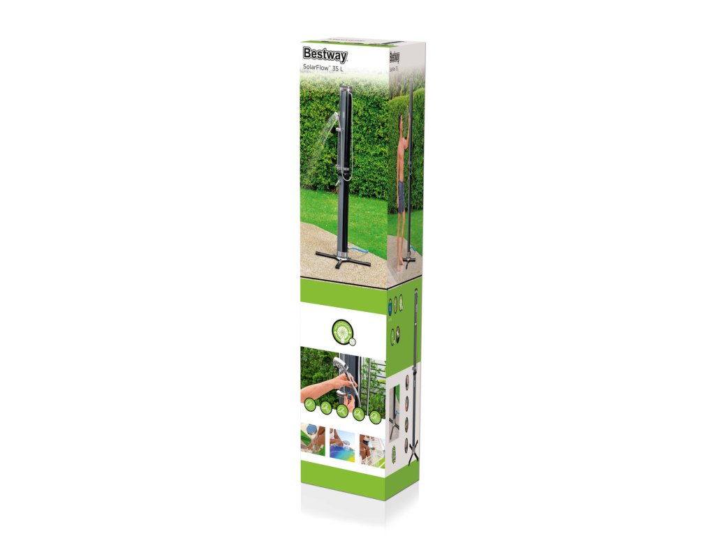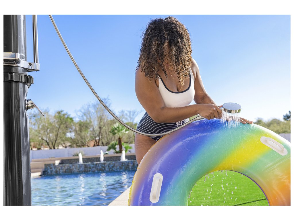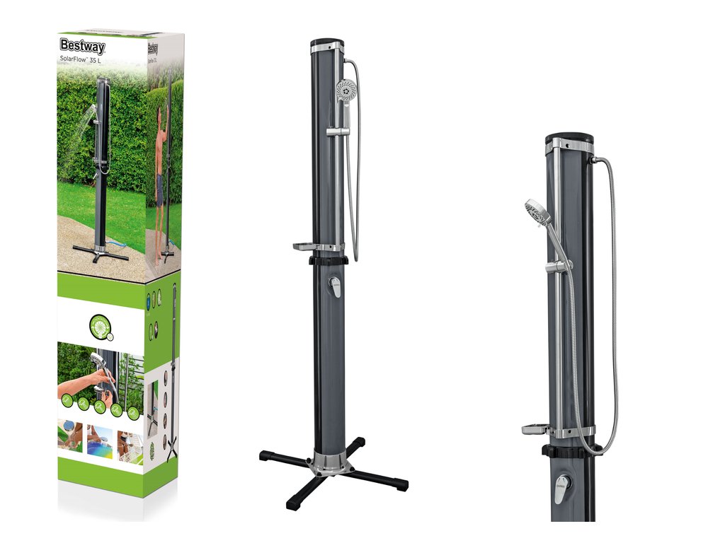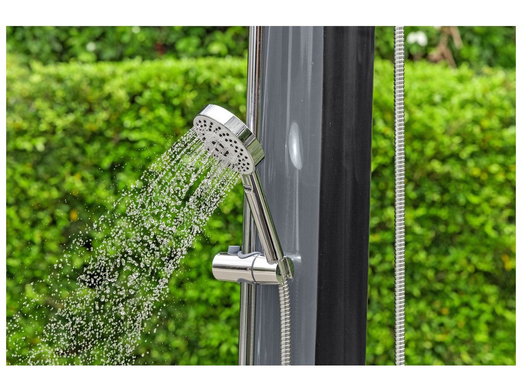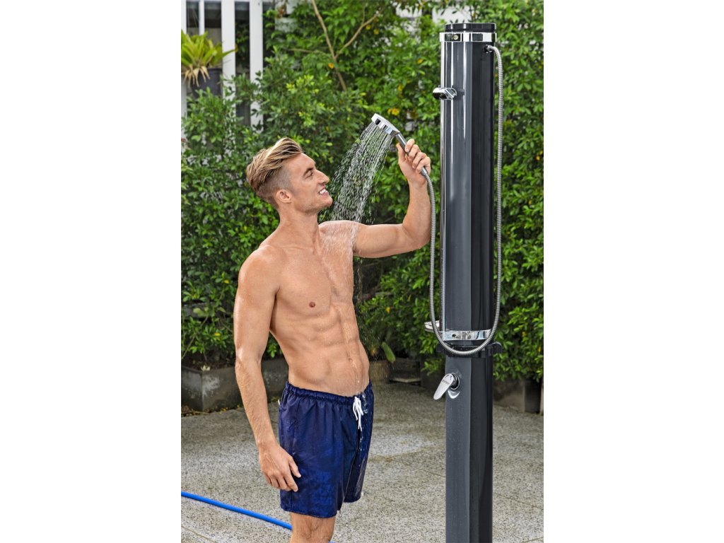 Záhradná sprcha je ideálnym riešením pre každého, kto sa chce osprchovať pred skokom do bazéna, ale to nie je všetko. Je tiež ideálna na ochladenie v horúcich dňoch alebo na relaxáciu po fyzickej námahe. Vďaka nastavovacej rukoväti si môžete zvoliť správnu teplotu vody. Nastaviteľná sprchová hlavica môže byť trvalo namontovaná alebo držaná v ruke a má viacero nastavení striekania. Ľahko sa inštaluje vďaka priloženej základni alebo sa dá namontovať na akýkoľvek povrch. Všetky potrebné montážne prvky sú súčasťou sady. Pevná základňa zaisťuje stabilitu. Sprcha je vyrobená z odolného materiálu, ktorý zaručuje dlhú životnosť produktu a odolnosť voči poveternostným podmienkam.