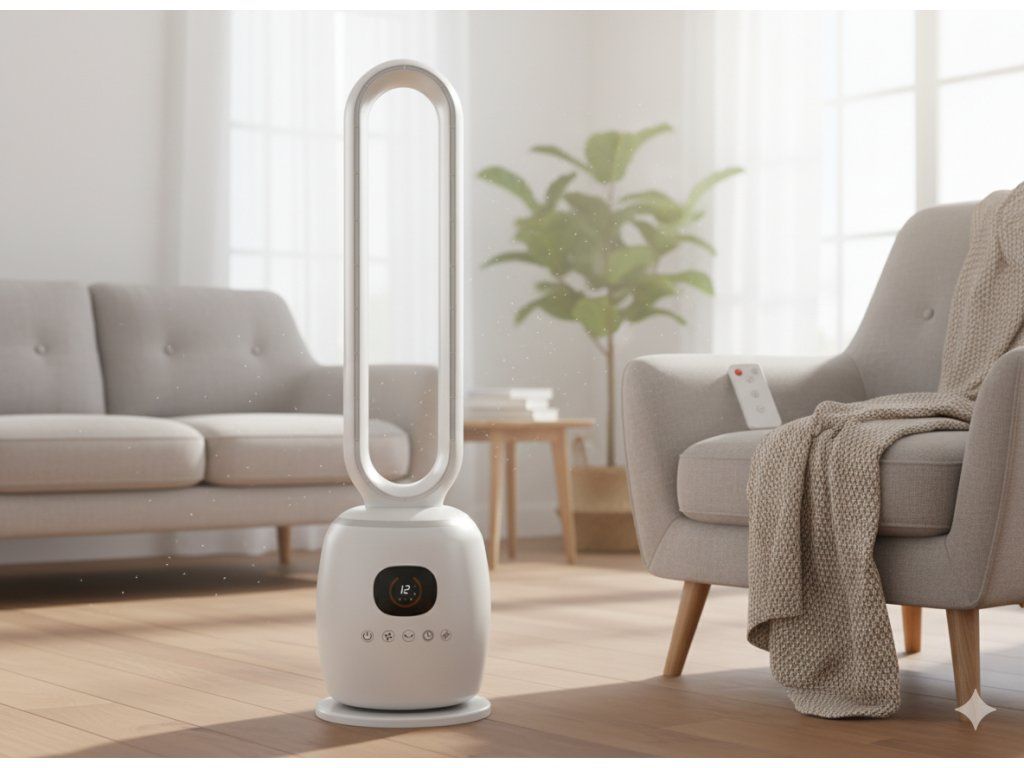 Moderný stojací bezlopatkový ventilátor s predĺženou konštrukciou je ideálnou voľbou do obývacej izby, kancelárie alebo spálne. Zaisťuje rovnomerný, príjemný prúd vzduchu bez náhlych poryvov.