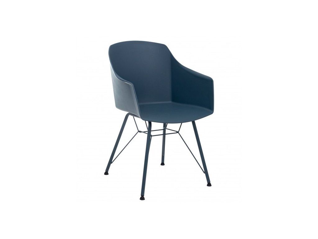 Elegantná tmavomodrá stolička určená okrem iného do jedálne, obývacej izby alebo na zastrešenú terasu. Optimálne tvarované sedadlo s vysokým operadlom a podrúčkami zaisťuje pohodlný odpočinok. Na výrobu sedadla bol použitý polypropylén, ktorý sa prispôsobí postave a zároveň si zachová správny tvar. Nohy stoličky sú vyrobené z práškovo lakovanej ocele, ktorá sa vyznačuje vyššou odolnosťou proti korózii. Zaisťujú stabilné postavenie celej konštrukcie na akomkoľvek podklade. Vďaka použitým materiálom sa stolička osvedčí pri používaní niekoľko sezón. Je tiež ľahké ju udržiavať v čistote. Moderný dizajn nábytku zapadá do aktuálnych trendov v zariadení interiérov a terás. Granátové sedadlo sa dá úspešne použiť v moderných, minimalistických a mnohých ďalších štýloch.