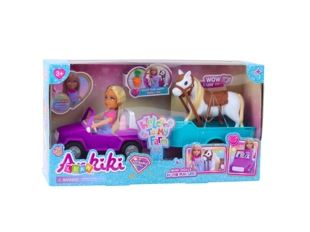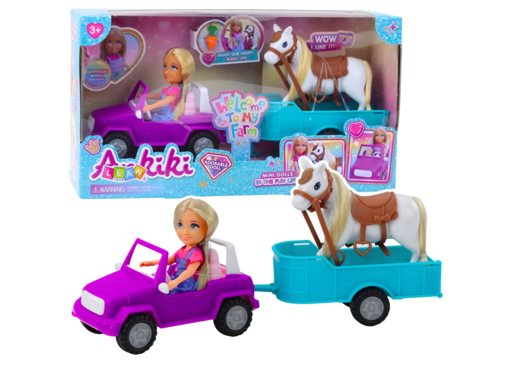 Súprava bábiky a koňa je jedinečná ponuka pre deti, ktoré milujú kreatívne hry a vytváranie vlastných dobrodružstiev. Súprava obsahuje farebné terénne auto s prívesom, bábiku vysokú približne 13 cm a roztomilého koňa so sedlom, pripraveného na cestovanie a jazdu. Vďaka realistickým prvkom si deti môžu zahrať na ošetrovateľov zvierat, organizovať výlety na farmu alebo exkurzie do prírody.