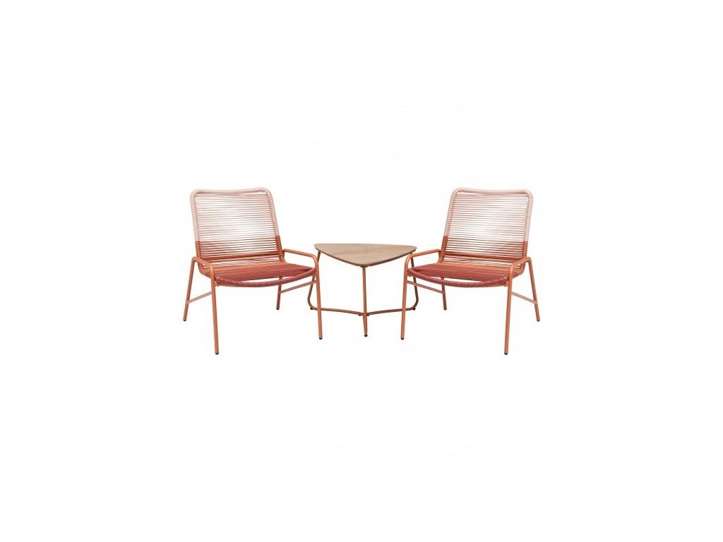 Pohodlné stoličky a praktický stolík v kombinácii s jedinečným dizajnom vytvárajú výsledne kávové sedenie, ktoré sa výborne osvedčí pri každodennom používaní. Ide o nábytok, ktorý sa úspešne hodí do najmodernejších aranžmánov relaxačných priestorov vonku aj doma.