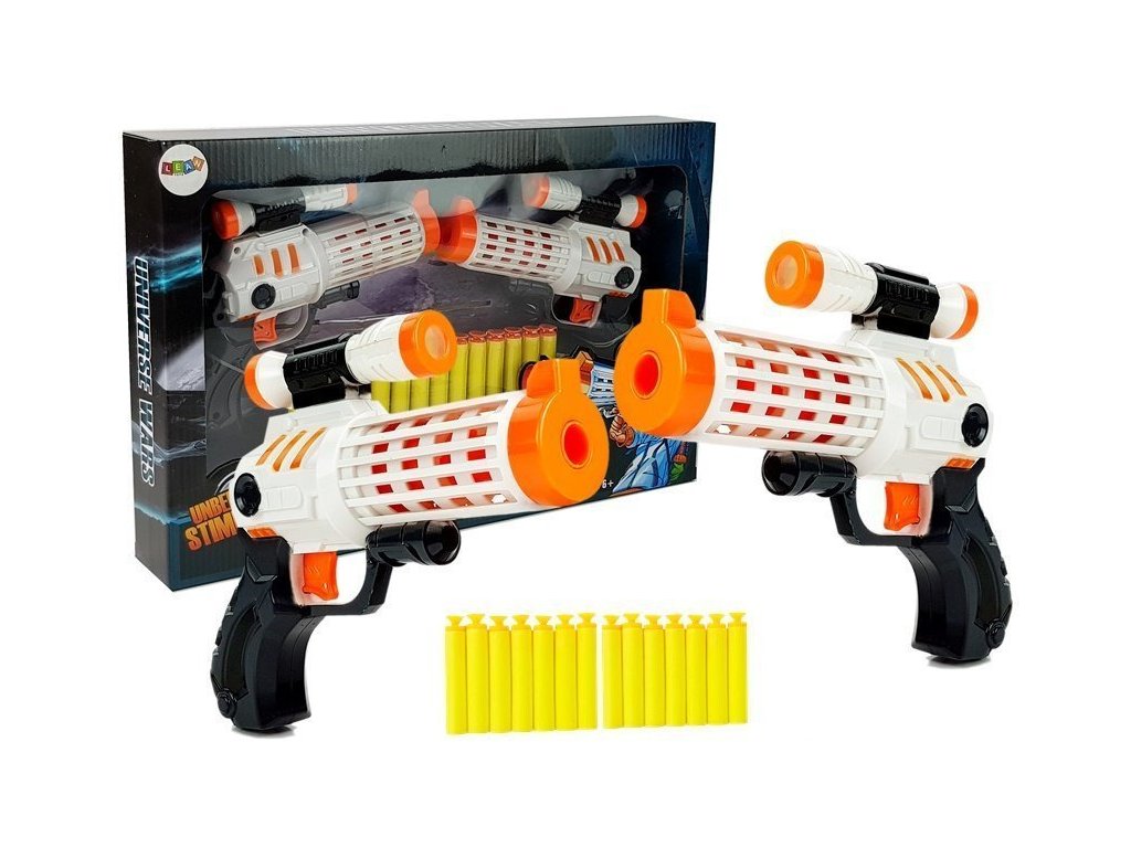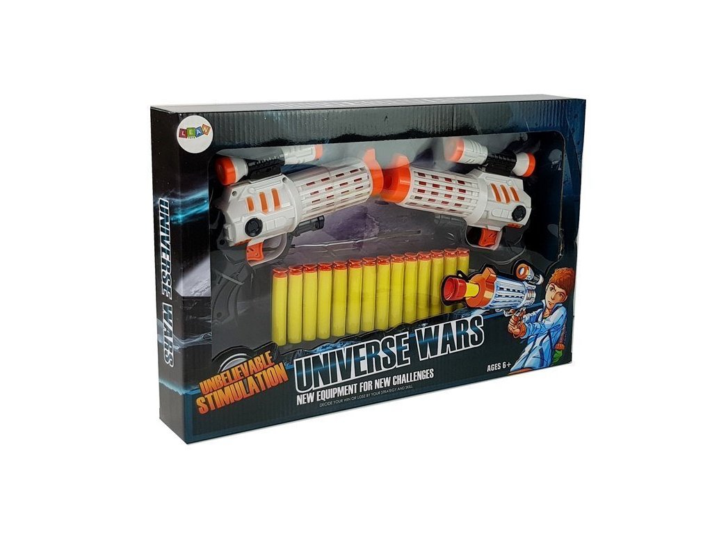 Puška je jednou z najlepších vecí, ktoré môže mať každý chlapec vo veku niekoľkých rokov. Umožní vám zorganizovať mnoho hier, ktoré sú obmedzené len vašou fantáziou. Vesmírna zbraň vám umožní brániť vesmír. Predstavujeme vám sadu dvoch zbraní, takže teraz môžete pozvať priateľa alebo člena rodiny, aby si s vami zahral!