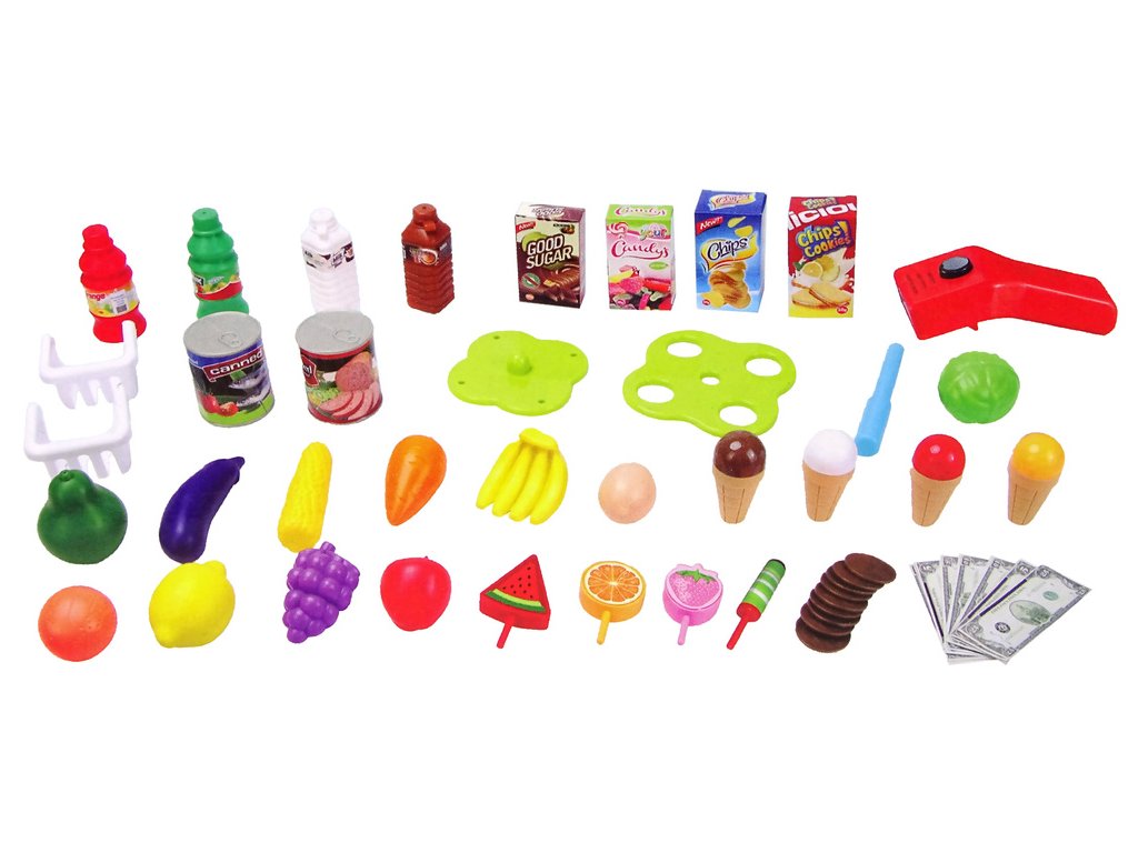 Detský supermarket je fantastická vzdelávacia hračka, ktorú deti môžu používať pri hre a spoznávaní sveta okolo seba. Deti sa naučia rozoznávať rôzne druhy produktov a zeleniny. Je to univerzálna sada na každodenné hranie v obchode a, čo je najdôležitejšie, na bezpečné nakupovanie. Vaše dieťa sa bude cítiť ako skutočný pokladník. Hra rozvíja logické myslenie a predstavivosť a môže naučiť pravidlá nakupovania a hodnotu peňazí jednoduchým a zábavným spôsobom. Fantastický nápad na hranie sa na dom, nakupovanie alebo predaj.