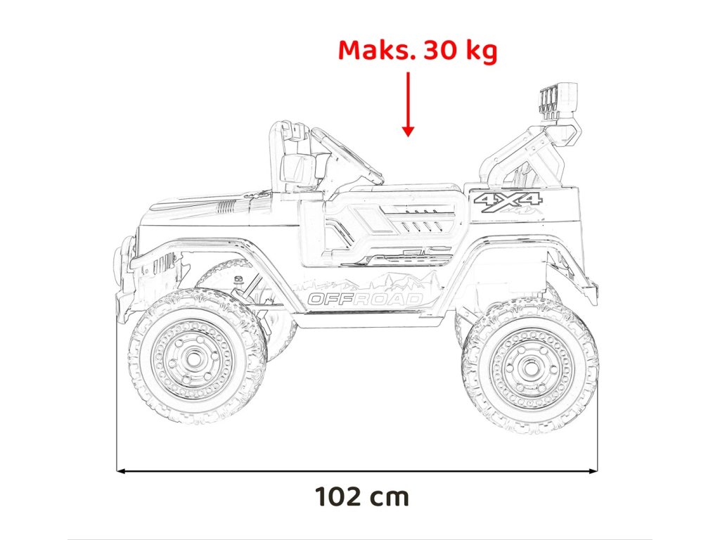 | Rozmery vozidla: | Dĺžka 102 cm,Šírka 65 cm,Výška 69 cm |