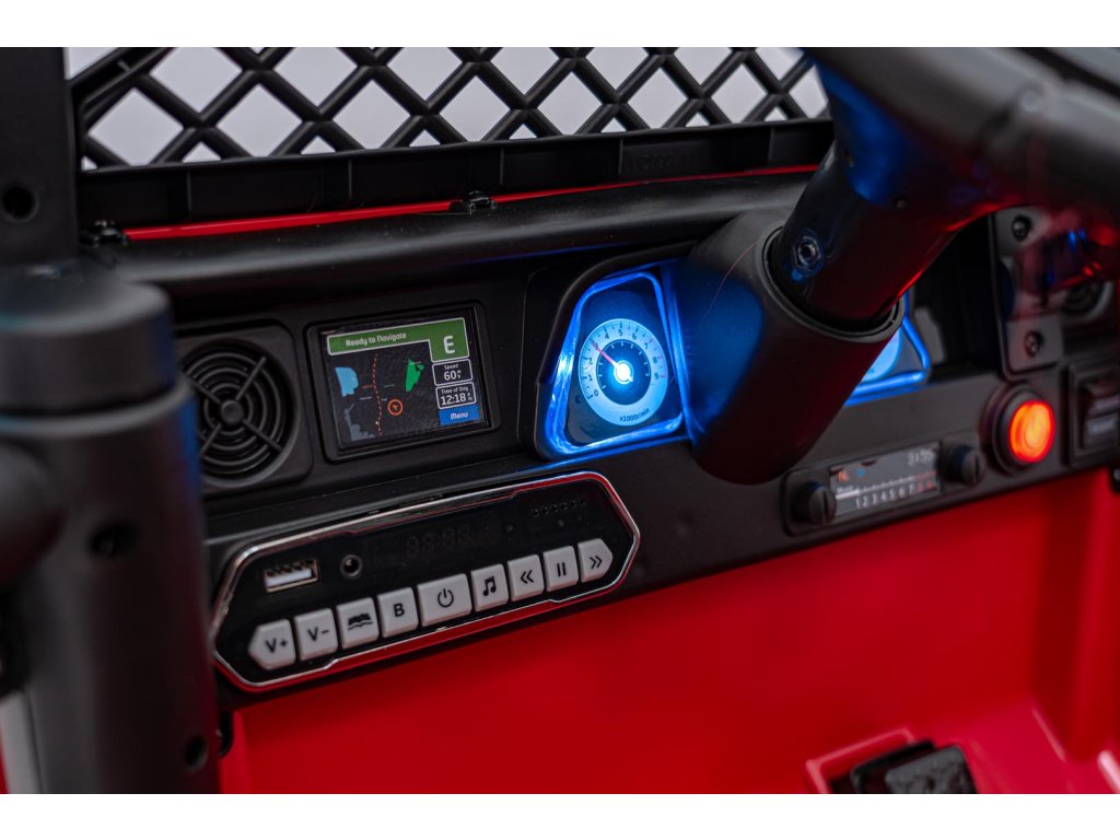 - Svetlá: LED svetlá, Predné, zadné, Horné svetlá (napájané batériou)