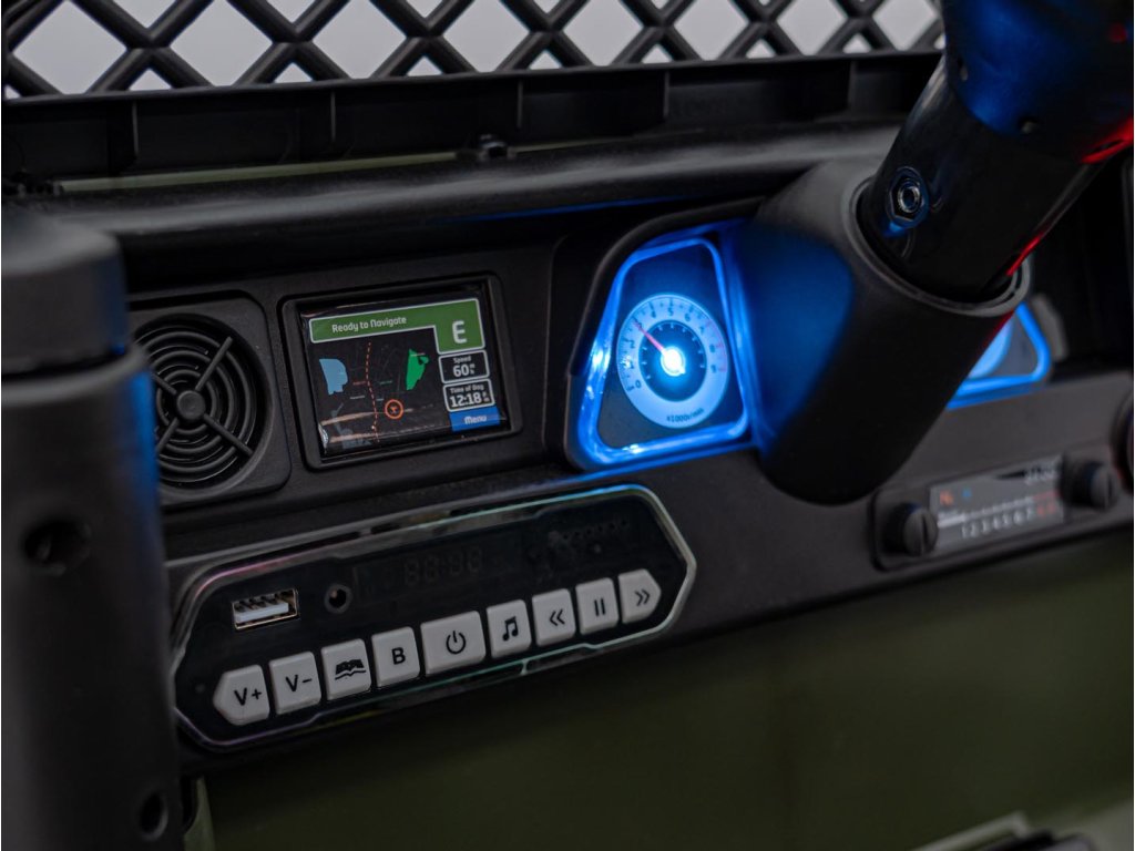 - Svetlá: LED svetlá, Predné, zadné, Horné svetlá (napájané batériou)