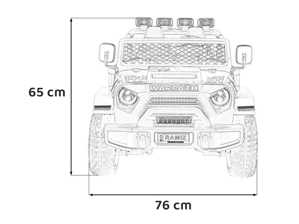 - Rozmery vozidla: Dĺžka 127 cm, Šírka 76 cm, Výška 75 cm,