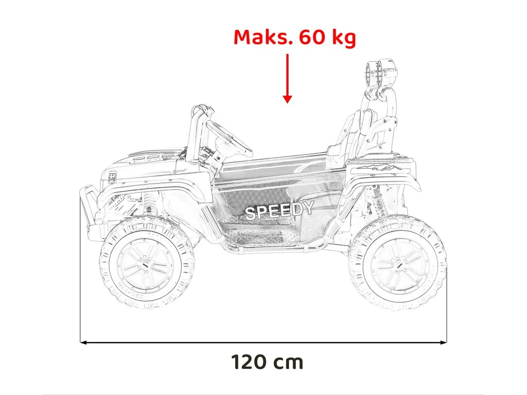 | Rozmery vozidla: | Dĺžka 120 cm,Šírka 81 cm,Výška 83 cm |