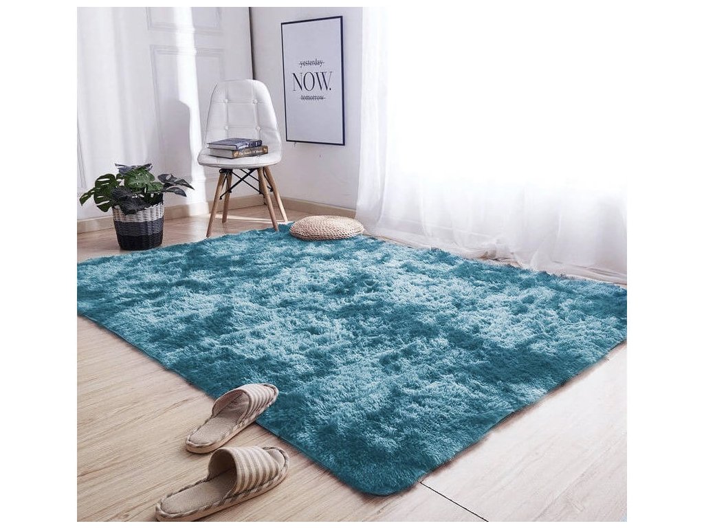 Tmavomodrý ombre shaggy koberec sa hodí do moderných interiérov, loftových aj minimalistických priestorov, kde poslúži ako vizuálny kontrast k svetlým stenám alebo nábytku.