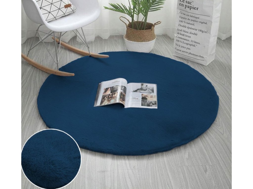 Tmavomodrý okrúhly koberec Rabbit