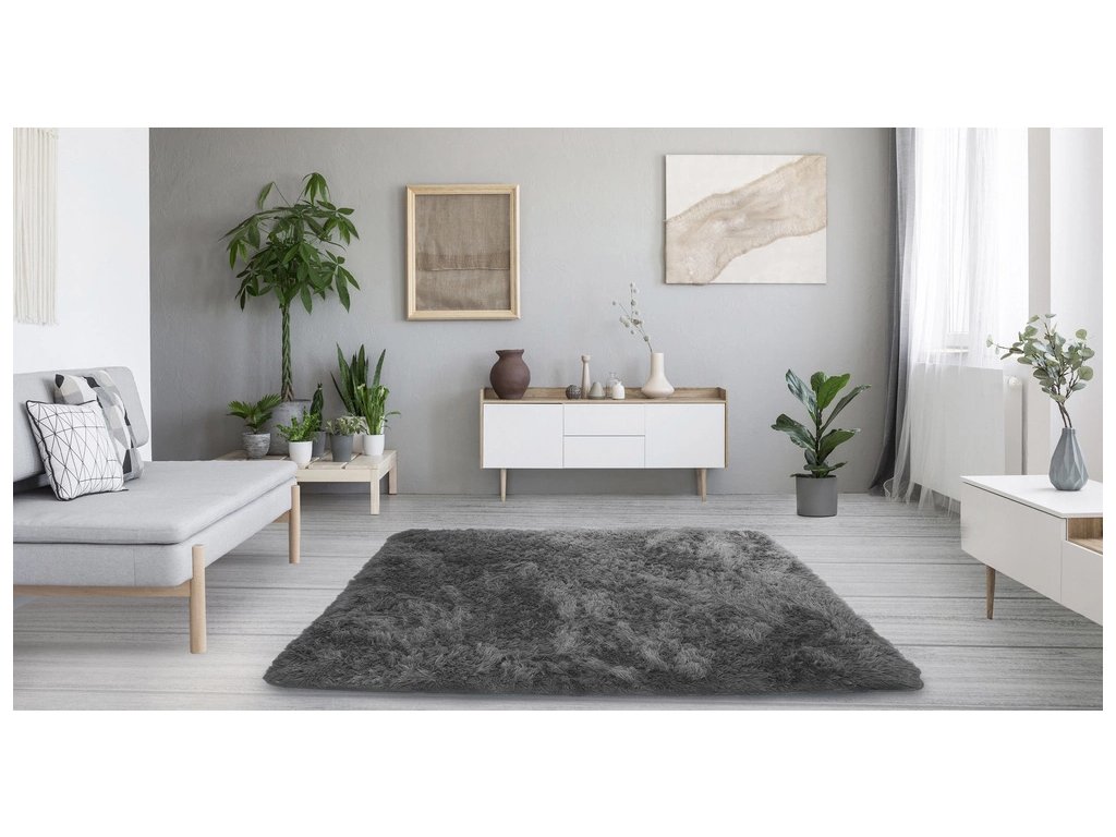 Tmavosivý obdĺžnikový shaggy koberec Lana je ideálnou voľbou pre tých, ktorí hľadajú štýlový, mäkký a praktický koberec s moderným vzhľadom.