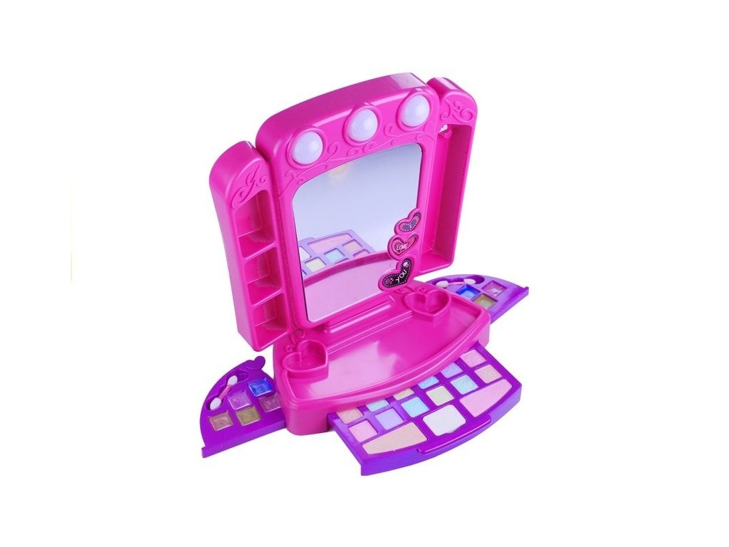 Toaletný stolík v ružovej a fialovej farbe vyzerá neuveriteľne dievčensky. Tri lampy umiestnené nad zrkadlom, ktoré vyžarujú intenzívne, jasné svetlo, budú určite prvkom, ktorý poteší každú malú dámu. Na boku zrkadla sa nachádzajú priehradky na malé doplnky, ako sú prstene alebo laky na nechty, zatiaľ čo na pravej strane sú dva háčiky na zavesenie dlhých náhrdelníkov alebo reťazí, ktoré ich chránia pred zamotaním.