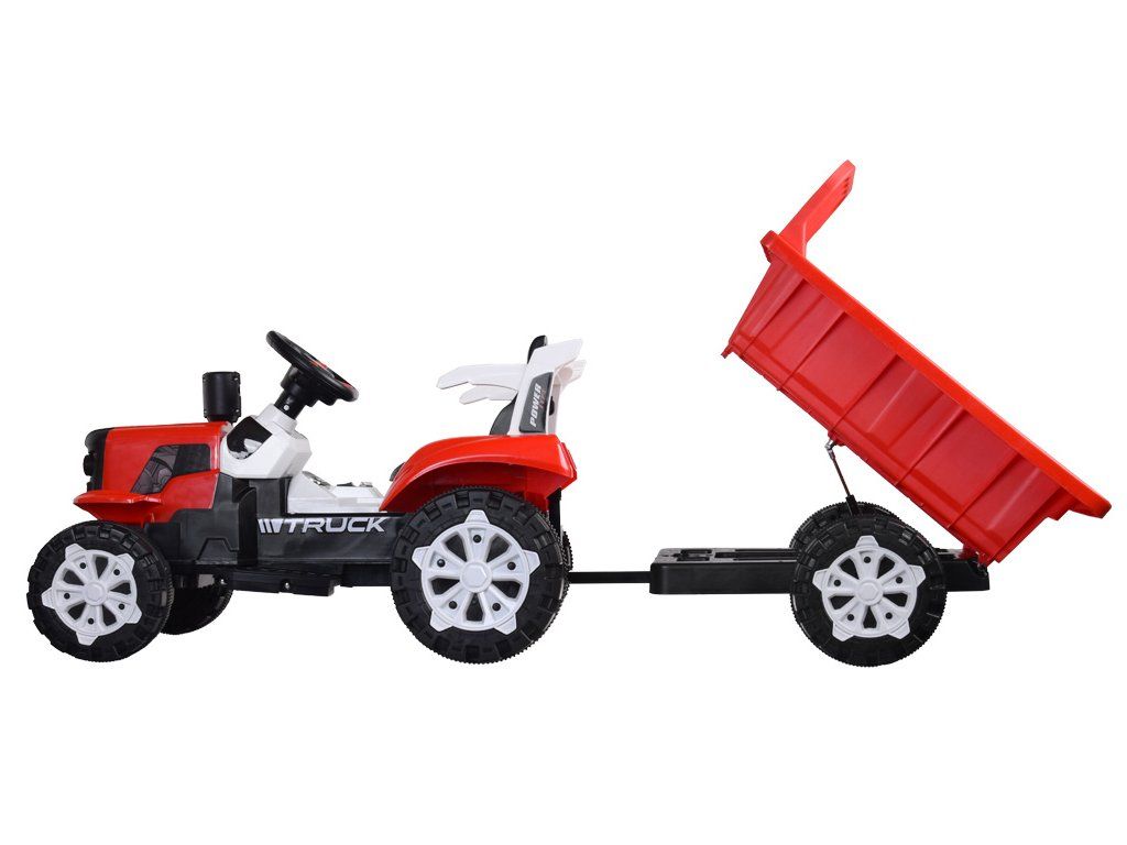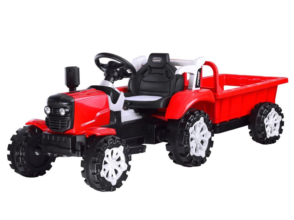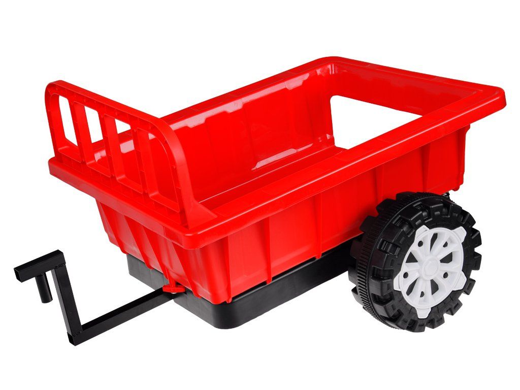 Akumulátorový traktor s prívesom pre malých traktoristov prinesie veľa radosti každému malému farmárovi. Traktor s prívesom, svetelnými a zvukovými efektmi prinesie veľa radosti každému malému farmárovi. Fantastický spôsob zábavy v záhrade alebo na detskom ihrisku. Teraz môžete svojmu malému pomocníkovi zaobstarať vhodné vybavenie, vďaka ktorému bude malý traktorista s veľkou radosťou voziť napríklad suché konáre alebo lístie na správne miesto alebo prepravovať hrablice, lopatky a vedierka do pieskoviska. Traktor je poháňaný 2 motormi 2 x 6 V + 1 gélovou batériou 6 V 7 Ah.