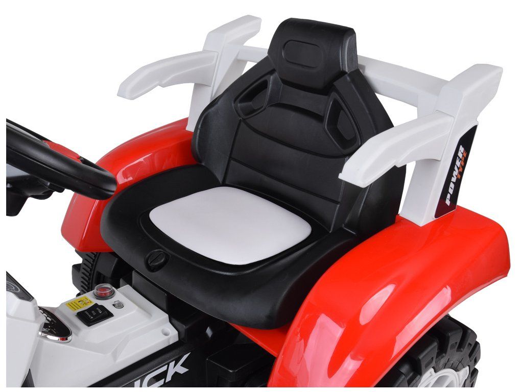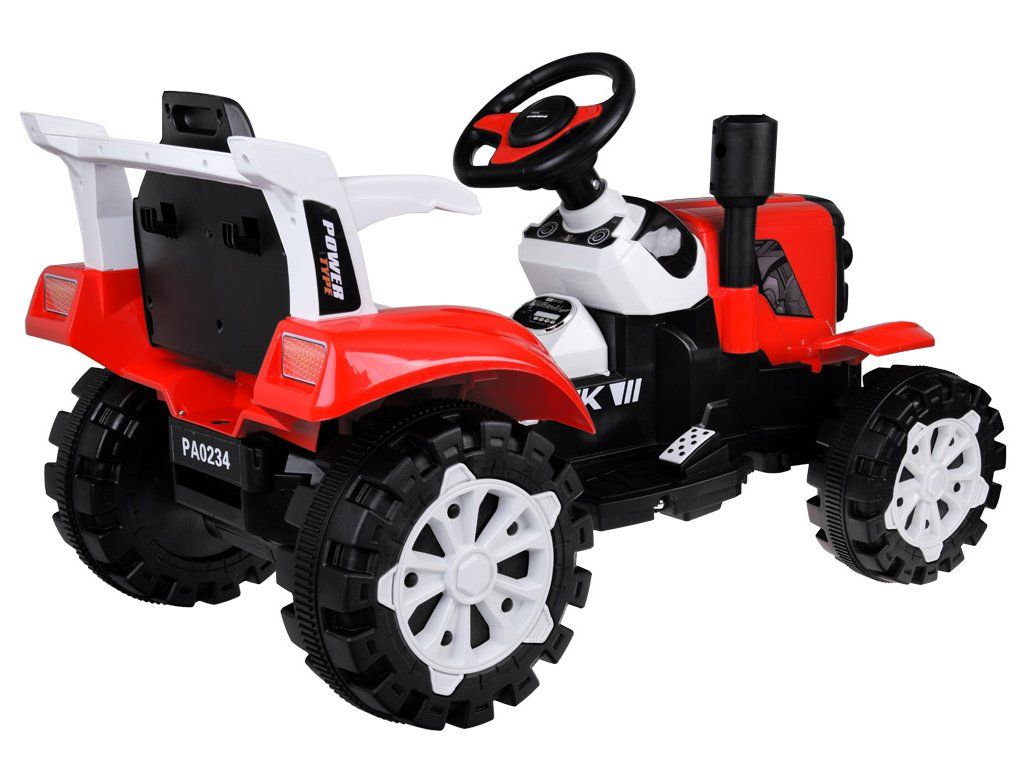 Vďaka 2 motorom si vozidlo bez problémov poradí s kopcami, nerovnosťami alebo trávou. Traktor je vybavený brzdou, ktorá sa aktivuje po zdvihnutí nohy z plynového pedála. Rýchlosť vozidla sa ovláda pomocou diaľkového ovládača 2,4 GHz, vďaka čomu má rodič plnú kontrolu nad vozidlom. Jazda dopredu a dozadu sa ovláda pomocou prepínača dopredu, zastavenie, dozadu.