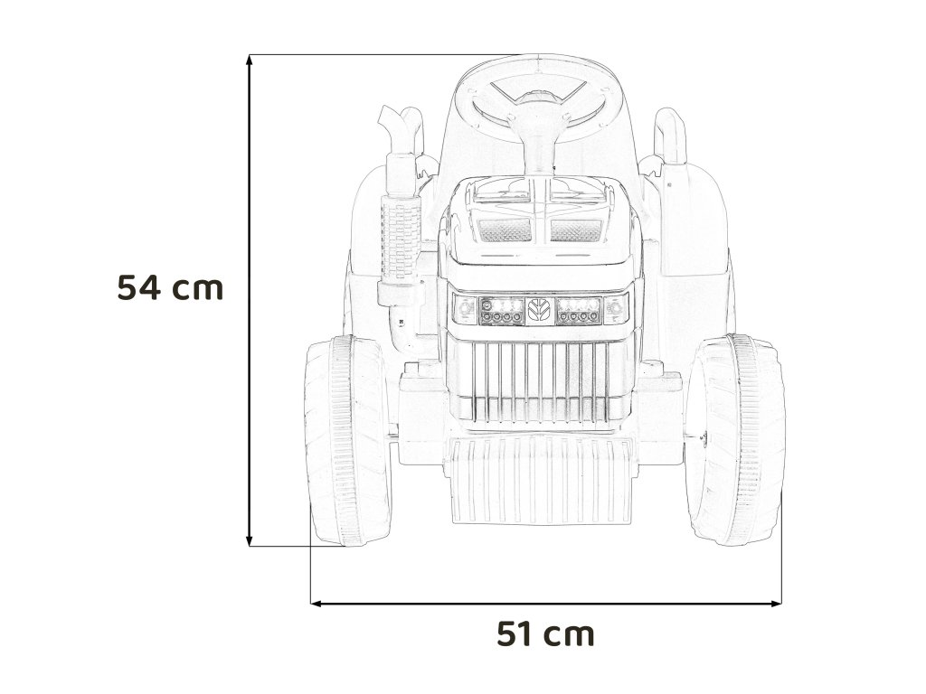 - Kolesá: Plastové :- predné: 21 x 8 cm, - zadné: 25 x 10 cm, - príves: 21 x 8 cm