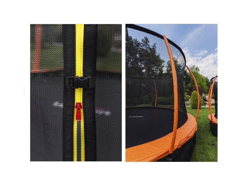 Model je vybavený vnútornou ochrannou sieťou, ktorá úplne oddeľuje skákaciu plochu od pružín a nosnej konštrukcie. Sieť začína už pri zemi, čím zabraňuje vstupu pod trampolínu počas používania a výrazne zvyšuje bezpečnosť detí.