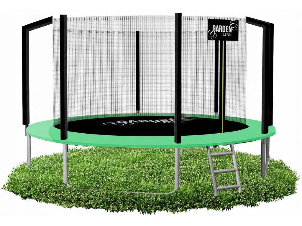42 pevne kalených a pozinkovaných pružín je chránených penovým golierom, čo zvyšuje bezpečnosť a komfort pri skákaní. Stabilnú konštrukciu trampolíny tvoria 3 dvojité nohy v tvare „U“ z pozinkovanej ocele, ktoré zabezpečujú vysokú stabilitu a odolnosť voči prevráteniu. Praktický kovový rebrík umožňuje pohodlný vstup na trampolínu, zatiaľ čo bezpečnostná sieť so zipsom a prackami zaručuje maximálnu ochranu.