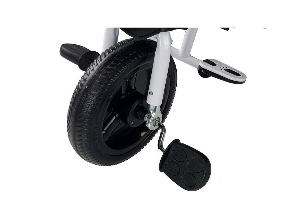 Konštrukcia bicykla zahŕňa priestranný košík na nákupy alebo poklady vášho dieťaťa, umiestnený medzi zadnými kolesami, ako aj malé vrecko na zips na vodiacej tyči pre rodičov – tieto detaily uľahčujú celodenné jazdy a výlety. Vďaka mäkkému penovému ochrannému prvku bude vaše dieťa počas prechádzok úplne v bezpečí a nespadne zo sedadla. Okrem toho môžete detské sedadlo otočiť smerom k sebe a dohliadať na jeho bezpečnosť. Na riadidlách je tiež zvonček, ktorým môže vaše dieťa upozorniť ostatných, že sa blíži. Trojkolka je určená pre všetky deti vo veku od 6 do 60 mesiacov s hmotnosťou do 25 kg. Je vyrobené z odolného a pevného plastu, ktorý zaručuje dlhú životnosť a pohodlie pri používaní. Bicykel má mäkké EVA kolesá. Detská trojkolka je zabalená v originálnej kartónovej krabici, v ktorej sa nachádzajú skrutky, náradie a návod na jednoduchú montáž.
