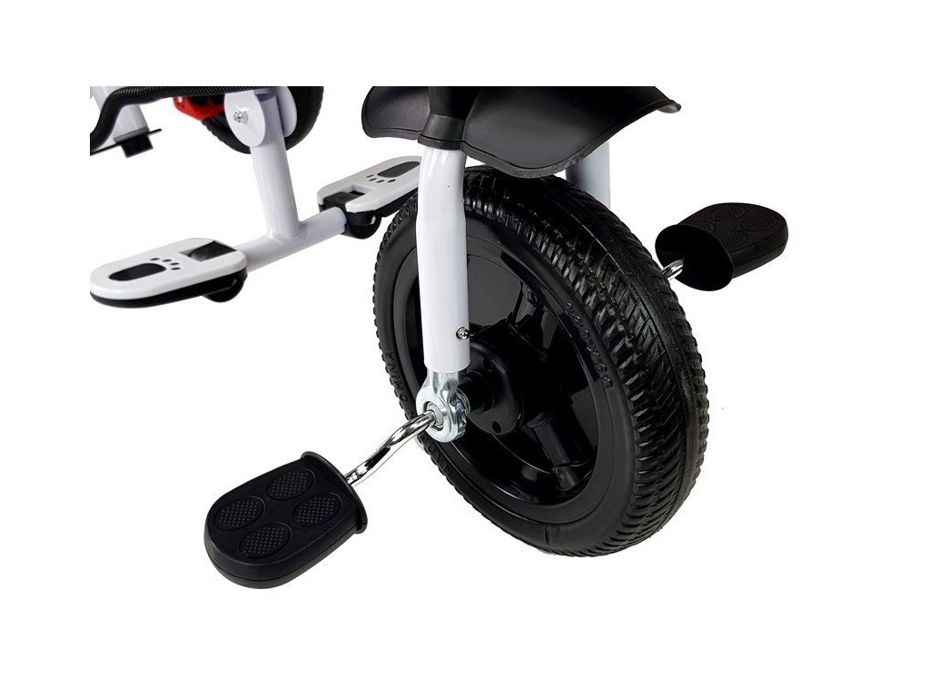 Konštrukcia bicykla zahŕňa priestranný košík na nákupy alebo poklady vášho dieťaťa, umiestnený medzi zadnými kolesami, ako aj malé vrecko na zips na vodiacej tyči pre rodičov – tieto detaily uľahčujú celodenné jazdy a výlety. Vďaka mäkkému penovému bariéru bude vaše dieťa počas prechádzok úplne v bezpečí a nespadne zo sedadla. Okrem toho môžete otočiť detské sedadlo smerom k sebe a dohliadať na jeho bezpečnosť. Na riadidlách je tiež zvonček, ktorým môže vaše dieťa upozorniť ostatných, že sa blíži. Trojkolka je určená pre všetky deti vo veku od 6 do 60 mesiacov s hmotnosťou do 25 kg. Je vyrobené z odolného a pevného plastu, ktorý zaručuje dlhú životnosť a pohodlie pri používaní. Bicykel má mäkké EVA kolesá. Detská trojkolka je zabalená v originálnej kartónovej krabici, v ktorej sa nachádzajú skrutky, náradie a návod na jednoduchú montáž.