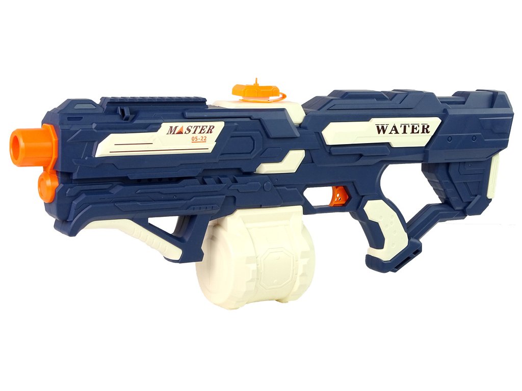 Vodná pištoľ je modrá s bielymi a oranžovými prvkami. Munícia, t. j. voda, je bezpečná, takže môžete začať bitku s rodinou alebo rovesníkmi. Neobmedzená zábava s priateľmi.