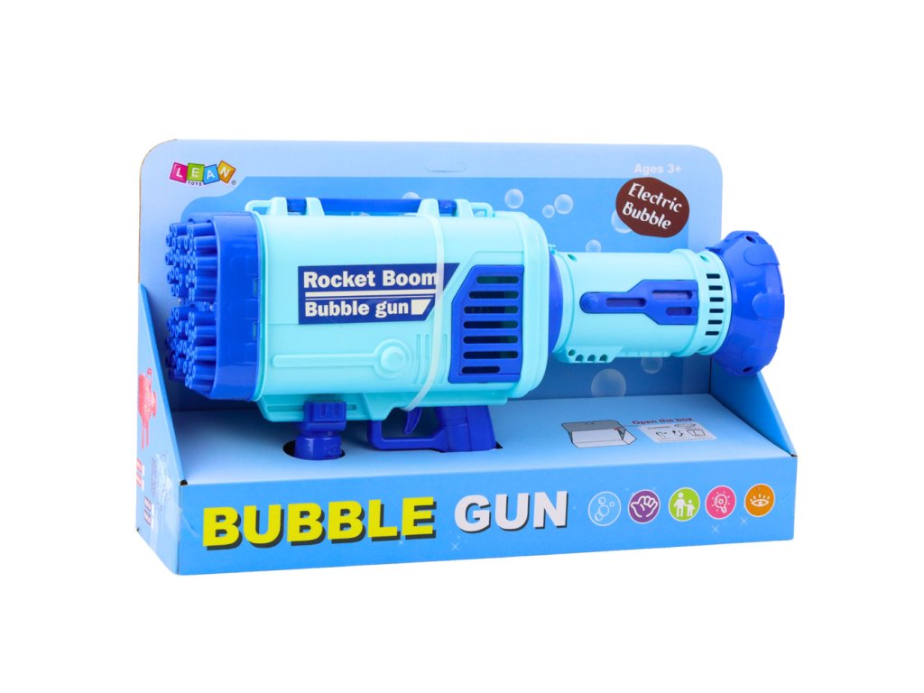 Veľká elektrická pištoľ na mydlové bubliny 64 otvorov modrá