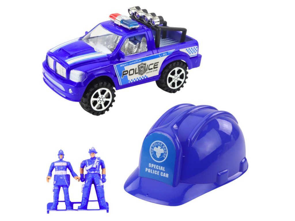 - Súprava obsahuje: policajné auto, terénne vozidlo, prilbu, 2 figúrky policajtov