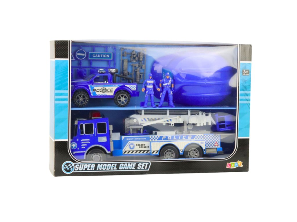 Táto jedinečná policajná sada je ideálna pre deti, ktoré snívajú o tom, že sa stanú policajtmi a budú sa zúčastňovať skutočných záchranných operácií. Sada obsahuje veľké policajné auto s pohyblivým rebríkom, terénne vozidlo, dve figúrky policajtov a ochrannú prilbu, vďaka čomu sa deti môžu ešte viac ponoriť do zábavy.