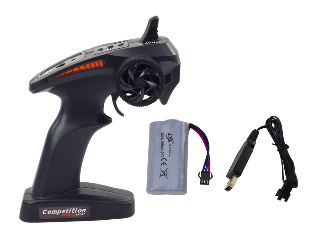 Auto je napájané 7,4 V batériou, ktorá je súčasťou sady. Nabíjačka je súčasťou batérie.
