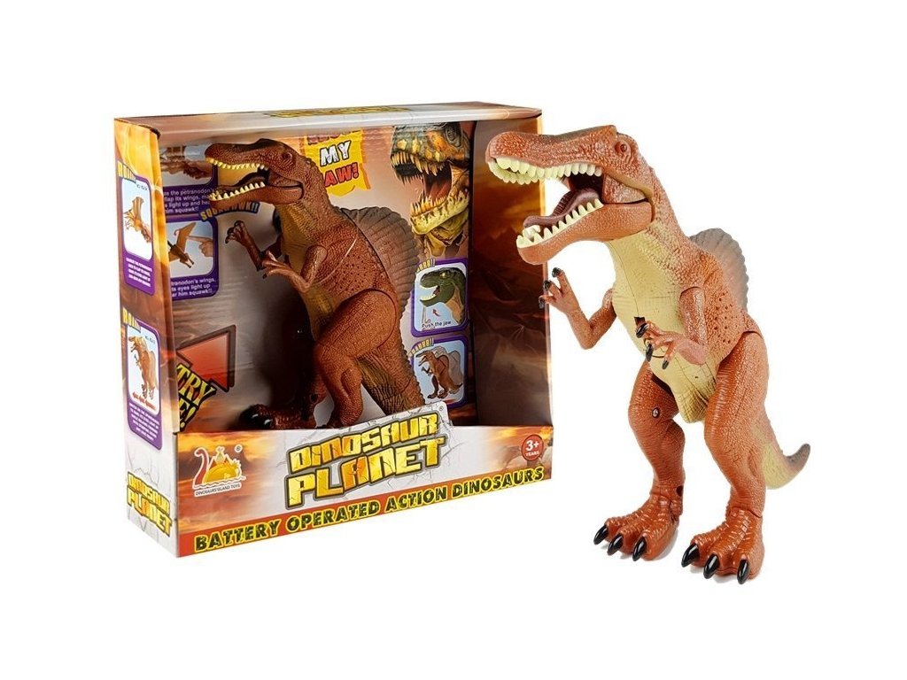 Hračka má dlhú, rovnú lebku a mohutnú, svalnatú postavu. Je napájaná 1,5 V AA batériami, ktoré sú súčasťou balenia. Po aktivácii veľký dinosaurus začne robiť kroky a revieť. Svetelné efekty, ako napríklad blikajúce oči, len pridávajú na nezvyčajnom zážitku.