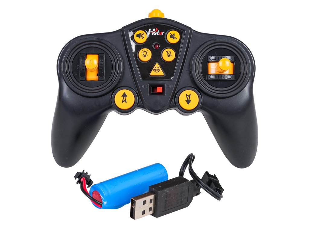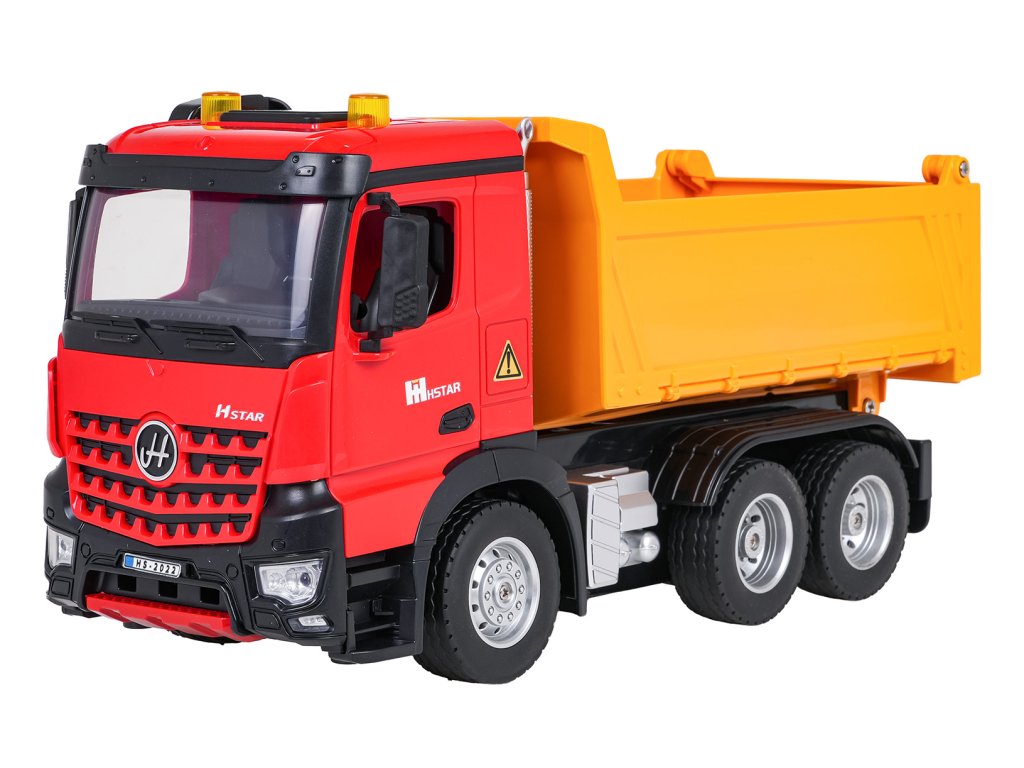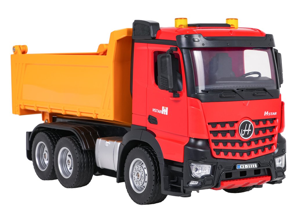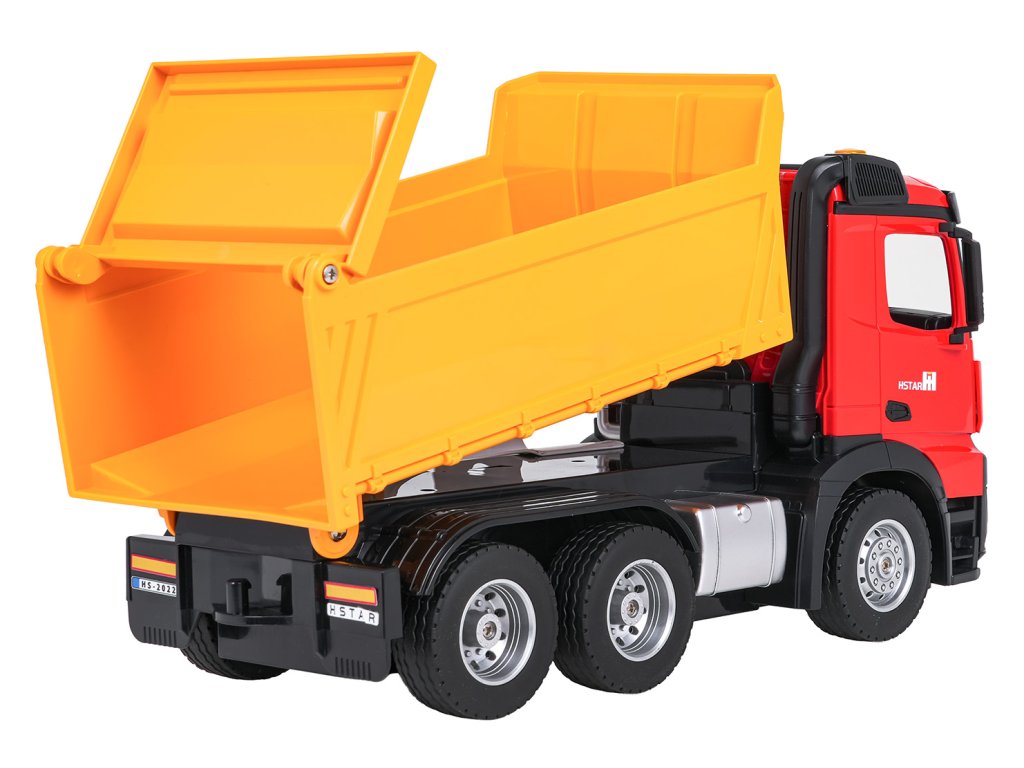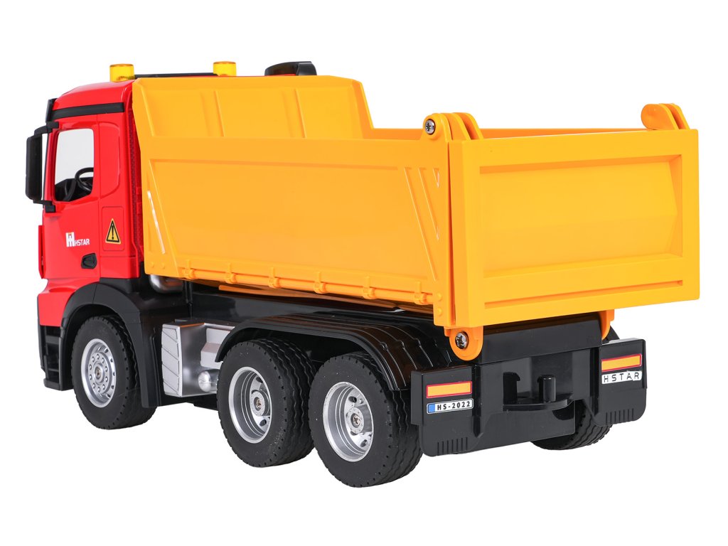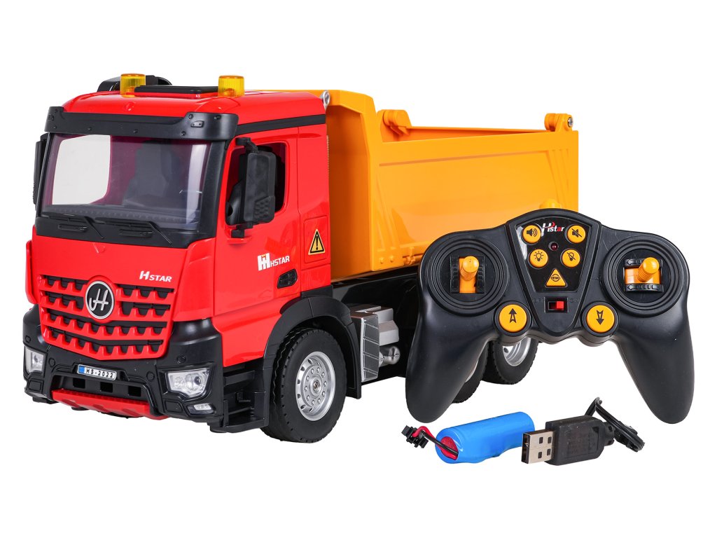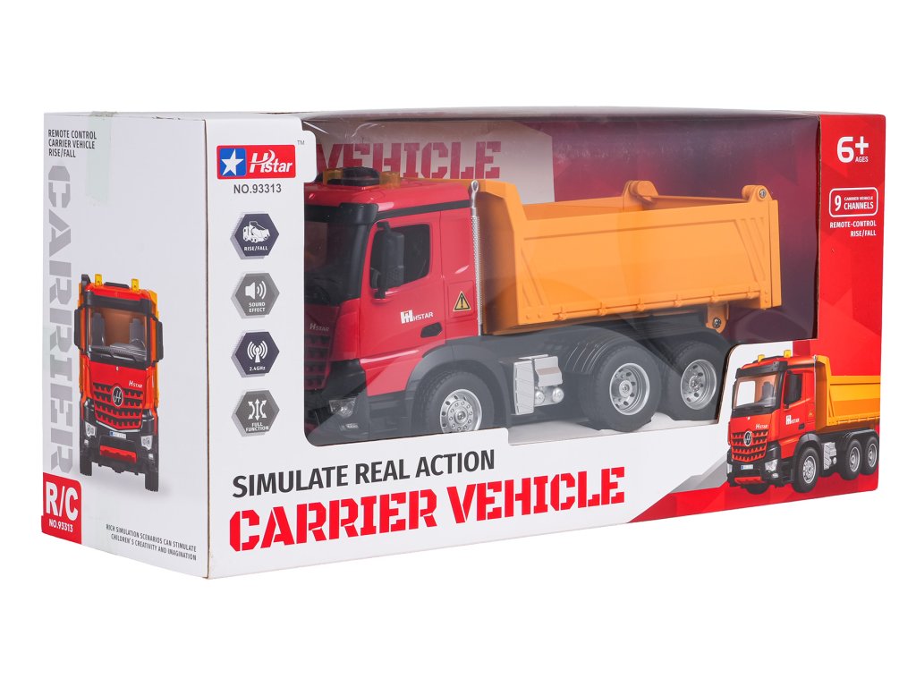 Diaľkovo ovládaný sklápač pre deti od šiestich rokov. Vozidlo má gumové pneumatiky, ktoré dobre priľnú k povrchu, a svetlá na streche a prednej časti nákladného auta. Vozidlo sa ovláda diaľkovým ovládaním a môže jazdiť dopredu, dozadu a otáčať sa doľava a doprava. Diaľkové ovládanie sa dá použiť aj na zapnutie a vypnutie svetiel a zvukov, ako aj na zdvihnutie a spustenie prívesu. Hračka je napájaná 3,7 V batériou (súčasť balenia) a diaľkové ovládanie vyžaduje 2 x 1,5 V AA batérie (nie sú súčasťou balenia).